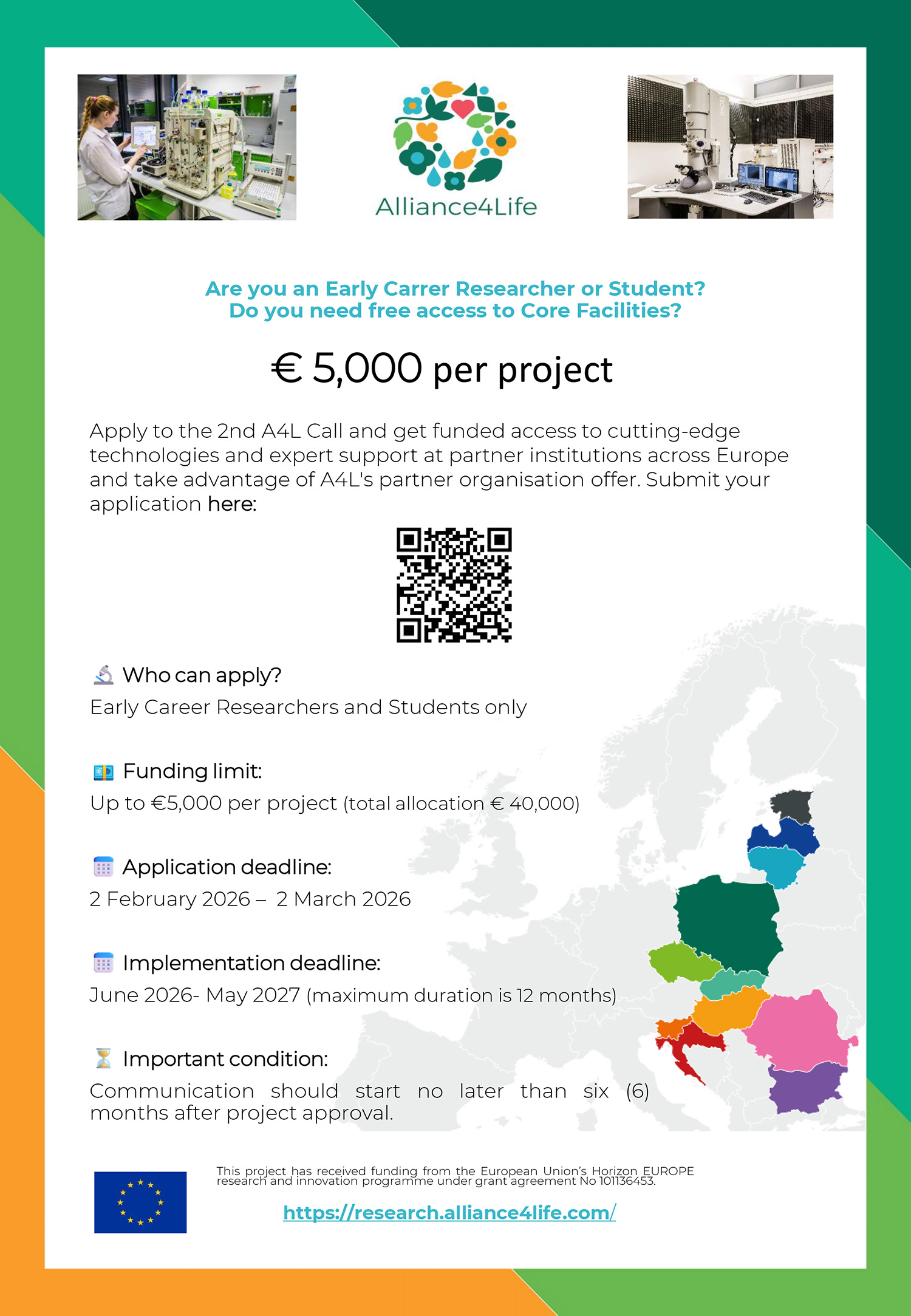 Zapra­sza­my do udzia­łu w dru­gim nabo­rze (Open Access Call) w ramach ini­cja­ty­wy Alliance4Life BRIDGE – umoż­li­wia­ją­cej bez­płat­ny dostęp do spe­cja­li­stycz­nej infra­struk­tu­ry badaw­czej part­ne­rów kon­sor­cjum A4L.