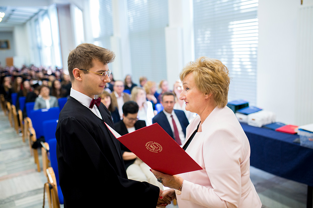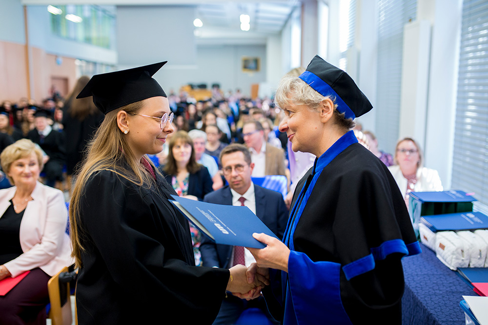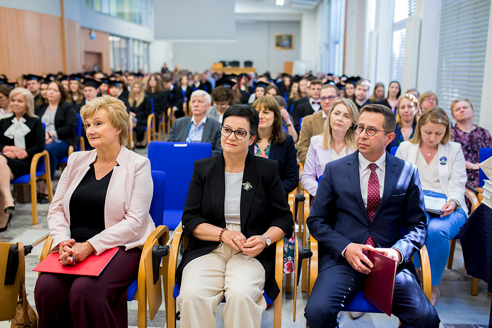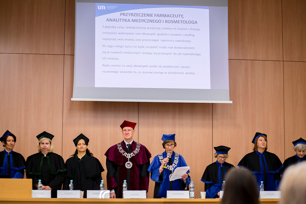 Tego dnia, w Audytorium im. Prof. Zofii Jerzmanowskiej 200 absolwentów kierunków: analityka medyczna, farmacja, kosmetologia, którzy w roku akademickim 2021/2022 ukończyli studia, otrzymali z rąk Prorektora ds. Organizacyjnych i Studenckich prof. Janusza Piekarskiego oraz Dziekan Wydziału Farmaceutycznego prof. Anny Kilanowicz-Sapota dyplomy ukończenia studiów. Absolwenci kierunku farmacja otrzymali również z rąk Prezesa Okręgowej Rady Aptekarskiej mgra farm. Pawła Stelmacha Prawo Wykonywania Zawodu Farmaceuty.