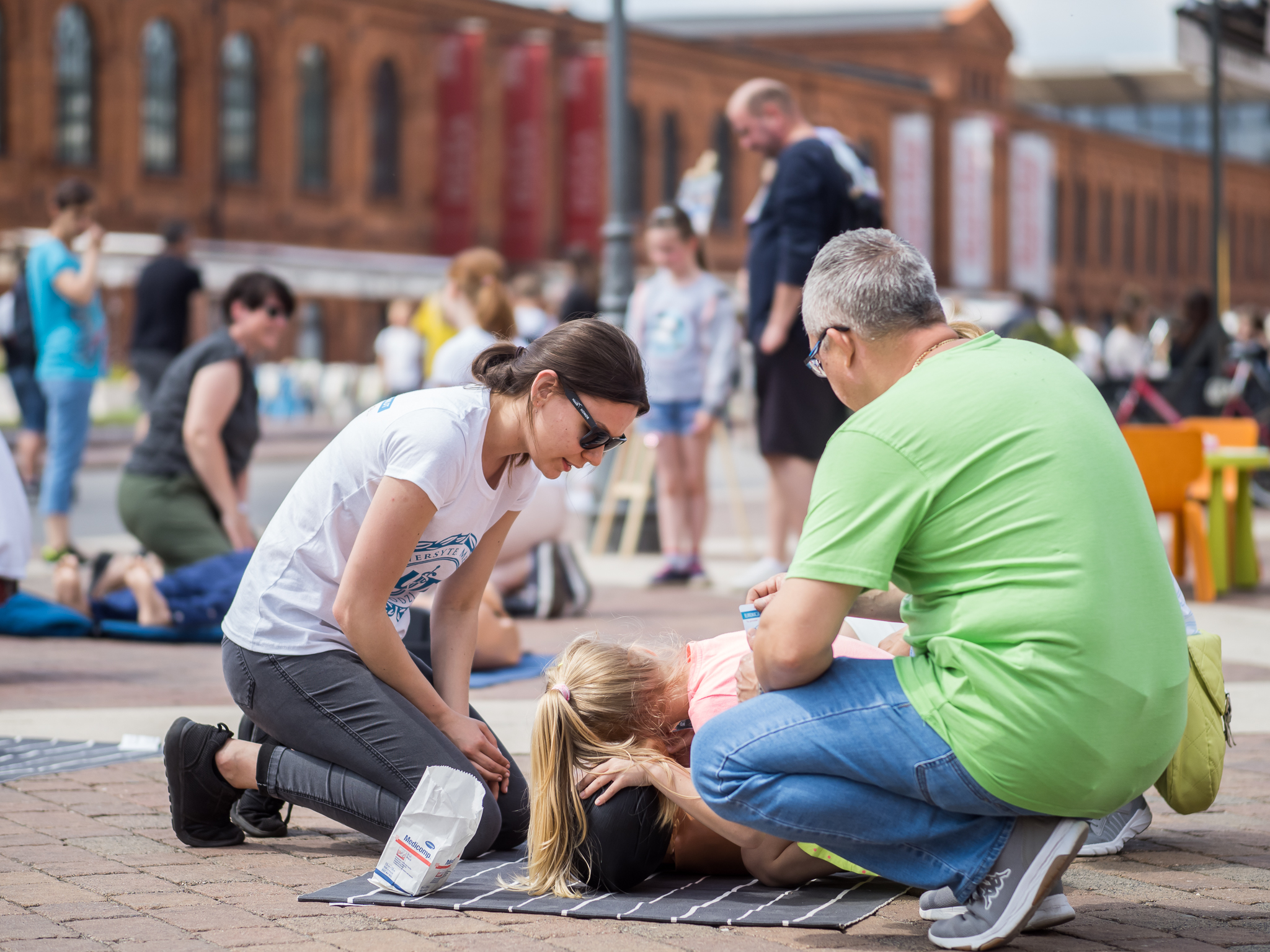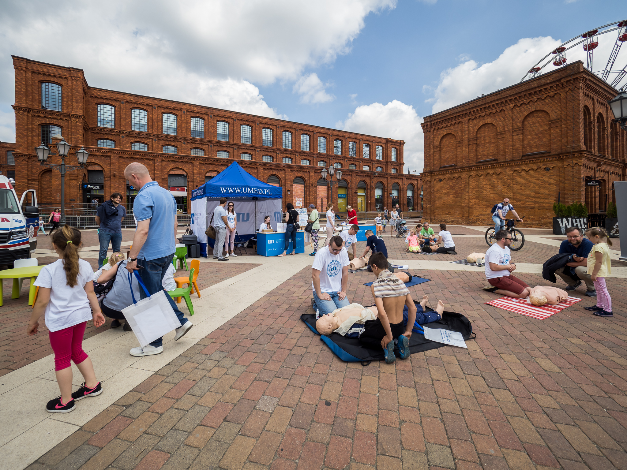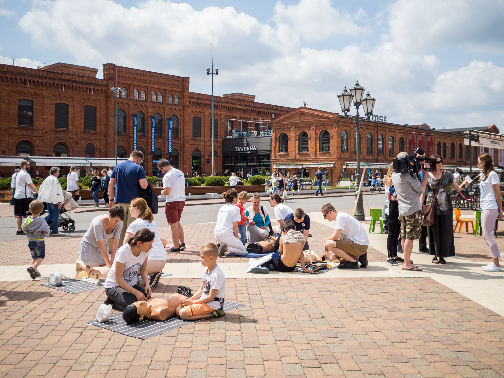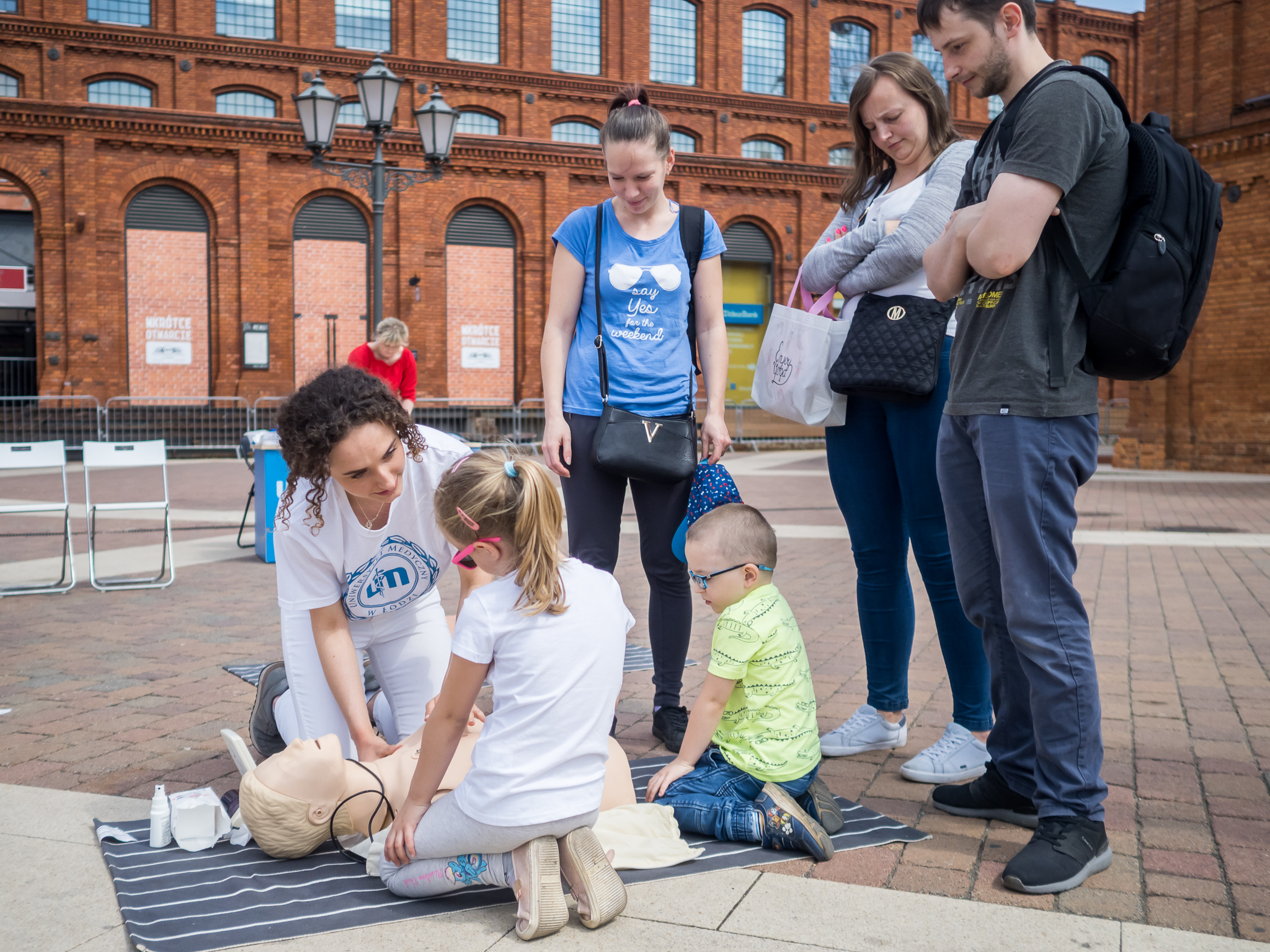 W ramach akcji TWOJE 5 MINUT w dniu 01.06.2019 przeszkoliliśmy na dziedzińcu łódzkiej Manufaktury ponad 300 osób, w większości dzieci, by w przyszłości potrafiły właściwie się zachować, gdy zobaczą osobę nieprzytomną, bez oddechu.