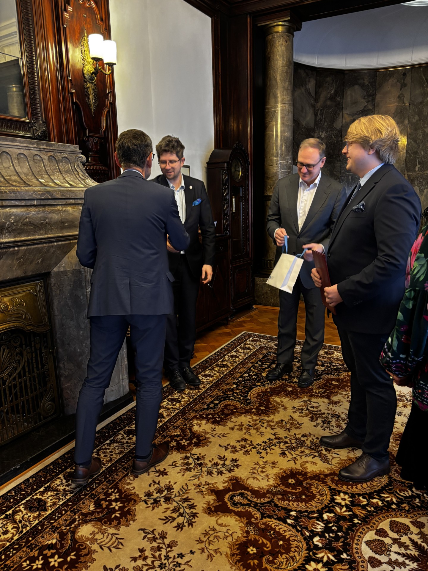W spo­ty­ka­niu uczest­ni­czy­li: Rek­tor Uni­wer­sy­te­tu Medycz­ne­go w Łodzi, prof. Janusz Pie­kar­ski, przed­sta­wi­cie­le fir­my Stat­Soft Pol­ska, pro­mo­tor zwy­cię­skiej pra­cy, prof. Woj­ciech Fen­dler, Dzie­kan Wydzia­łu Lekar­skie­go, prof. Jacek Roż­niec­ki oraz nagro­dzo­ny dr Damian Mikul­ski.