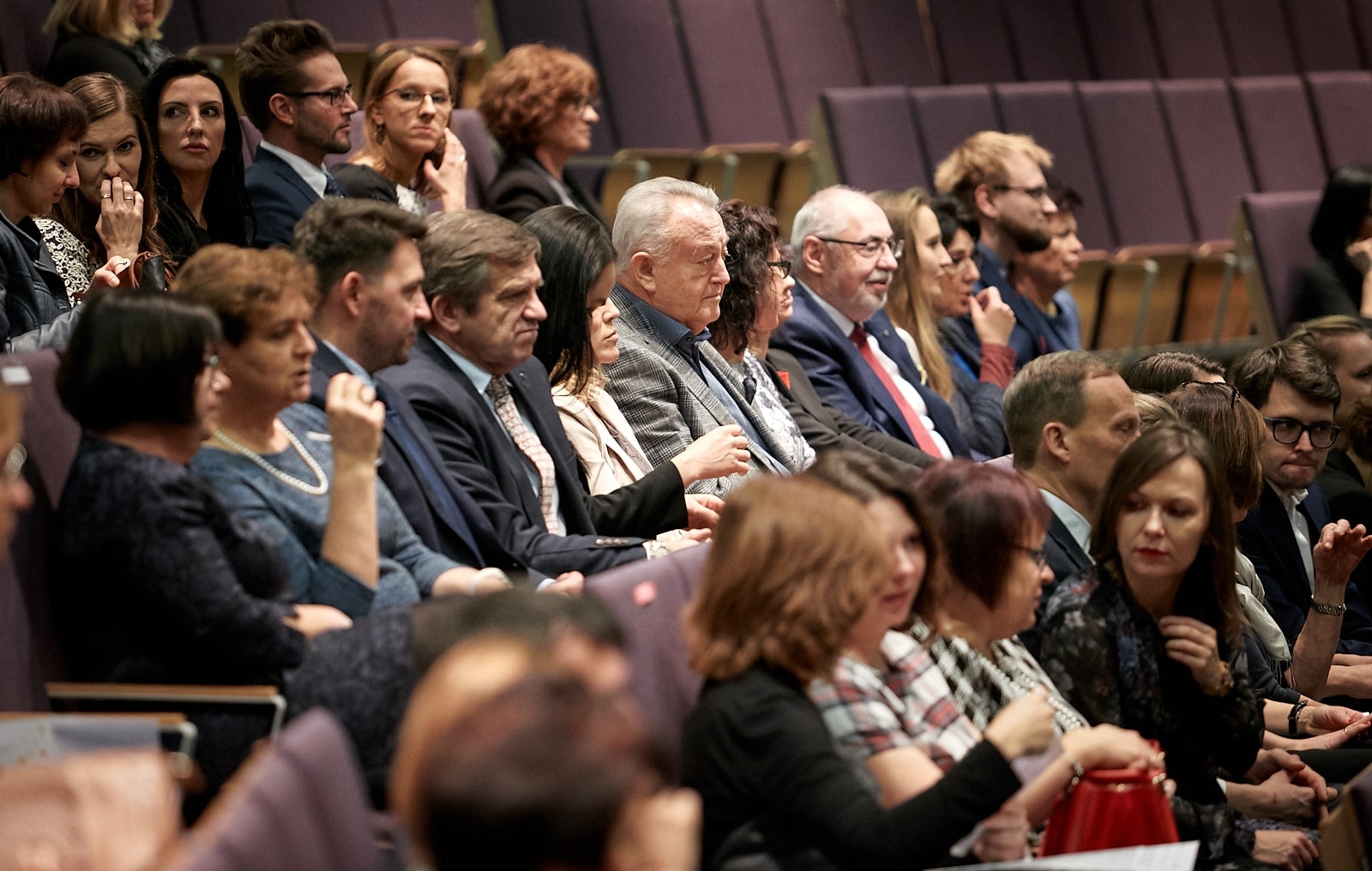 Prowadzący uroczystość, prof. Janusz Piekarski, Prorektor ds. Organizacyjnych i Studenckich, w swoim wystąpieniu zwrócił uwagę na ogromne znaczenie rozwoju naukowego, zarówno awansowanych, jak i całej Uczelni.