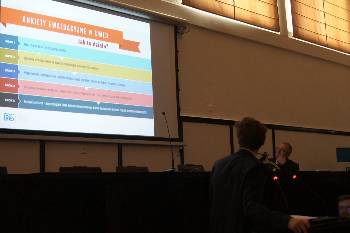 Swoją obecnością wydarzenie uświetnili prof. Tomasz Kostka – Prorektor ds. Kształcenia, prof. Elżbieta Brzezińska – Przewodnicząca Uczelnianego Zespołu ds. Zapewnienia Jakości Kształcenia oraz Jakub Kopytek – Przedstawiciel Uczelnianej Rady Samorządu Studentów.