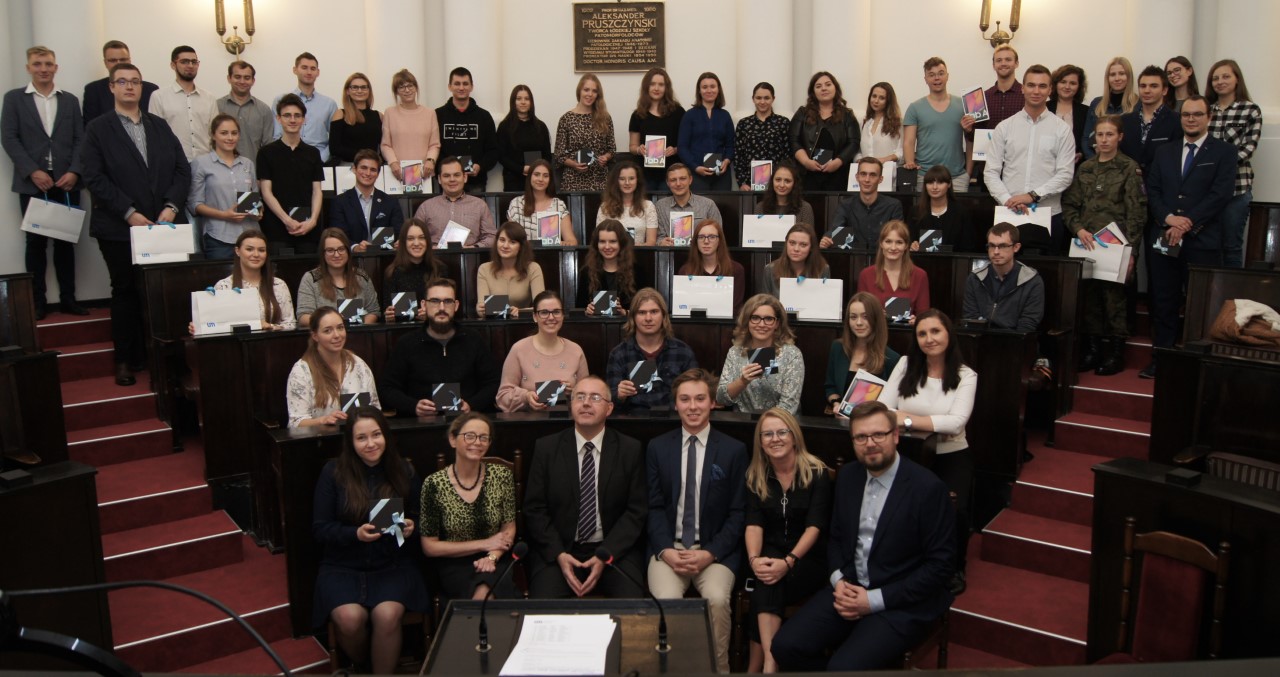 23 października w auli im. Pruszczyńskiego odbyło się uroczyste wręczenie nagród laureatom III edycji konkursu Wypełniajcie ankiety, wygrywajcie tablety. W tym roku nagrodziliśmy aż setkę studentów, którzy otrzymali atrakcyjne nagrody – tablety i powerbanki.