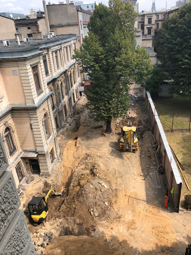 - wymiana infrastruktury technicznej podziemnej pod remontowanym parkingiem (instalacji wod.-kan. wraz ze studniami i wpustami, instalacji c.o., instalacji gazu, instalacji teletechnicznej, instalacji odgromowej podziemnej).