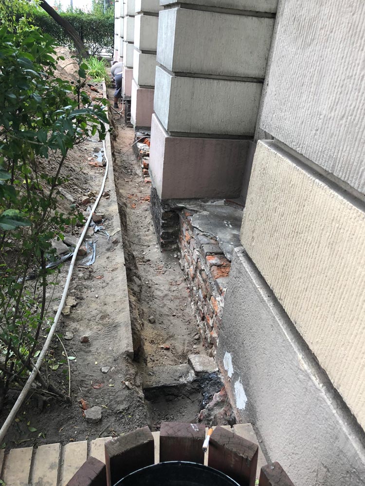 - wykonanie izolacji przeciwwodnej pionowej oraz poziomej, a także izolacji termicznej ścian fundamentowych całego budynku,