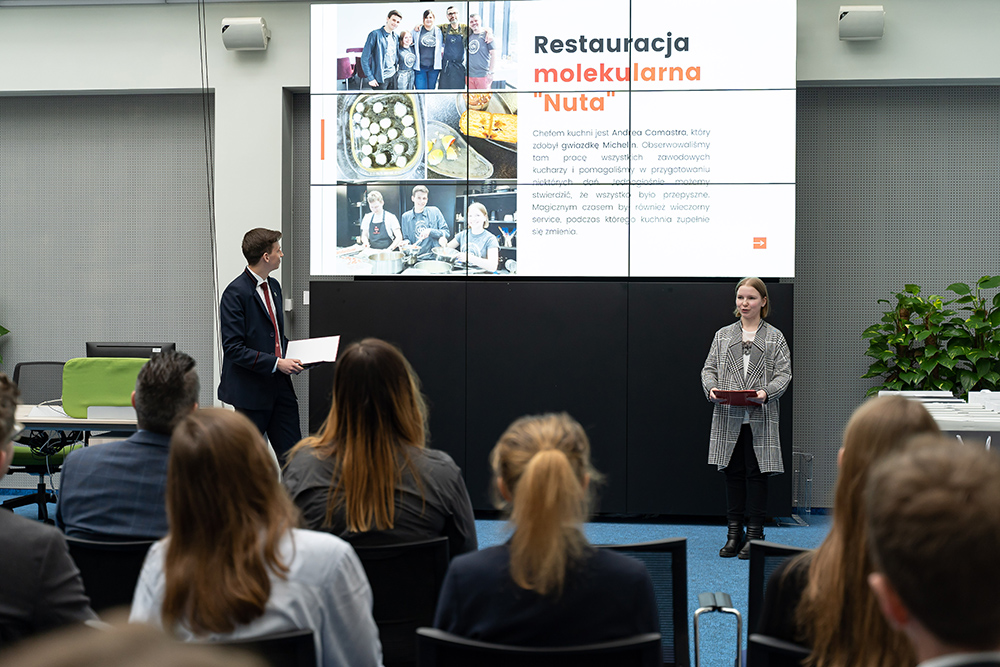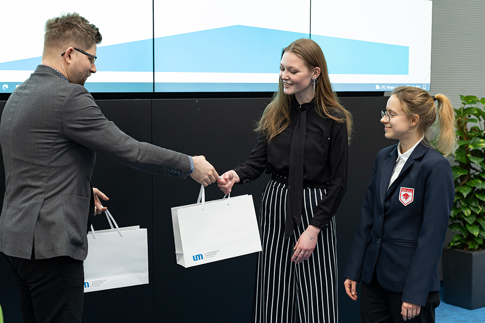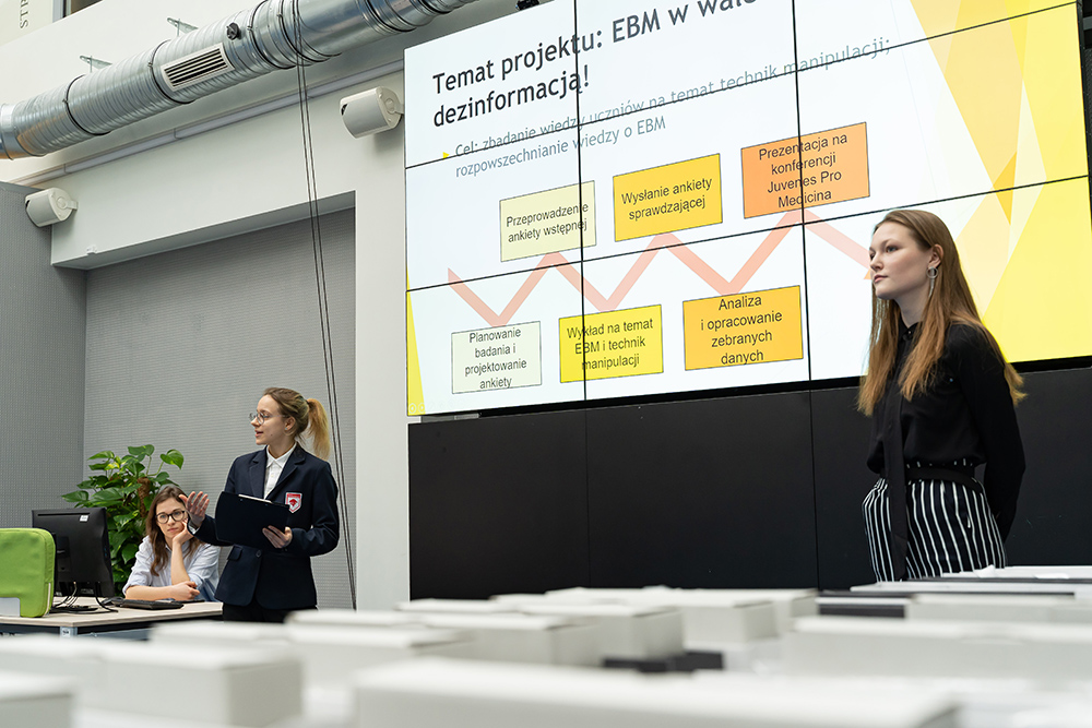 Na zakończeniu KUMPLA uczelnię reprezentował Paweł Zawieja — Kanclerz ds. Organizacji i Rozwoju UMED‑U oraz Joanna Milczarek — Dyrektor Biura Promocji, która poprowadziła całą uroczystość. Po ciepłych słowach związanych z całym projektem przyszedł moment na zaprezentowanie wszystkim gościom przez uczniów biorących w nim udział, wyników swojej rocznej pracy.
