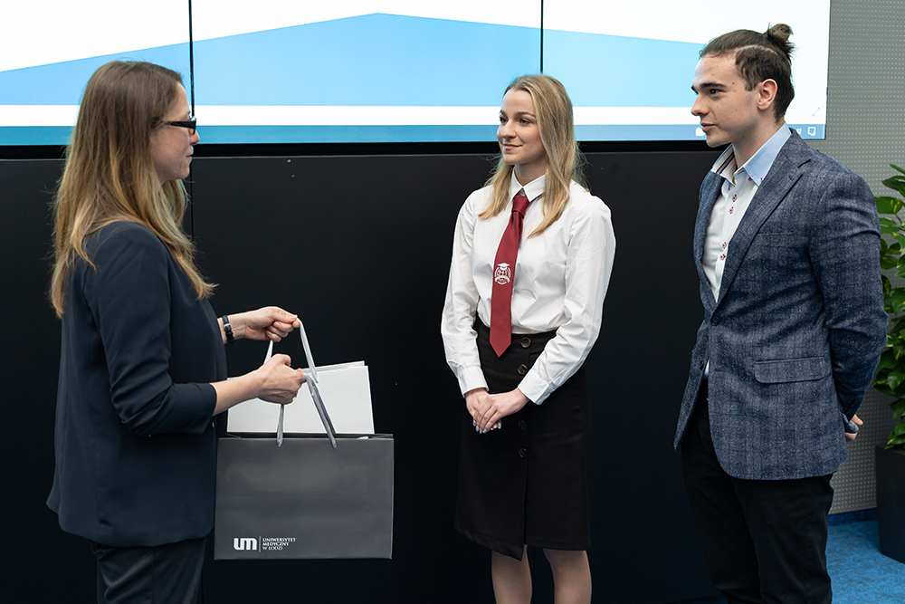 Po tych czterech wystąpieniach, Mentorzy mogli przekazać swoim podopiecznym nagrodę w postaci certyfikatu pozwalającego studiować na dowolnym kierunku Uniwersytetu Medycznego w Łodzi.