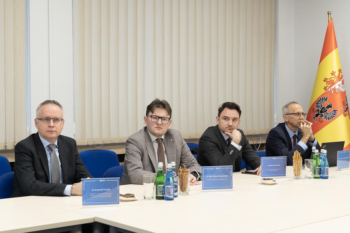 Wczoraj odbyło się spotkanie Wicemarszałka Województwa Łódzkiego Piotra Adamczyka z przedstawicielami łódzkich uczelni: prof. Pawłem Strumiłło, Prorektorem ds. Rozwoju Politechniki Łódzkiej, dr. hab. Łukaszem Korporowiczem, Prorektorem ds. Nauki Uniwersytetu Łódzkiego, dr Krzysztofem Frankiem, Prorektorem ds. Finansów i Rozwoju Uczelni PWSTiF w Łodzi. Uniwersytet Medyczny w Łodzi reprezentował Jarosław Horodecki, dyrektor Biura Nauki, Strategii i Rozwoju.