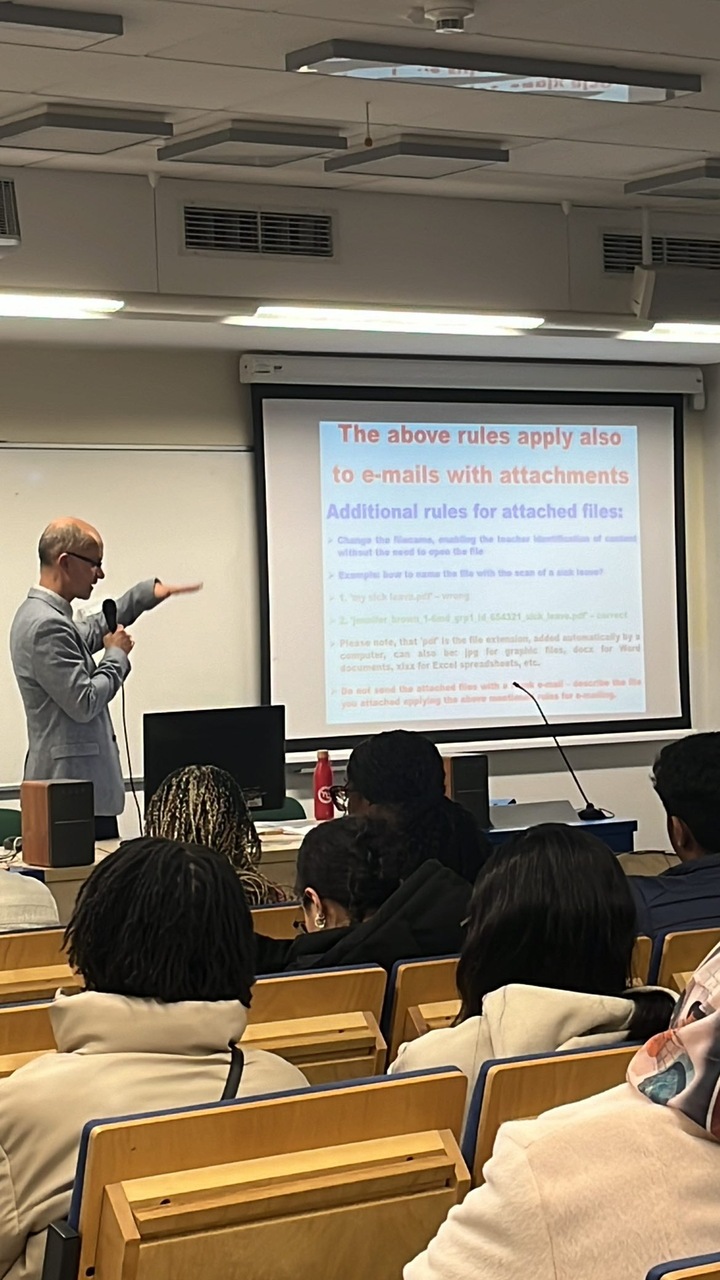 Tego dnia odbyło się spotkanie z prof. Sebastianem Kłoskiem – Prodziekanem ds. Studiów Anglojęzycznych, a także z przedstawicielami Straży Granicznej i Policji, którzy omówili zasady legalnego pobytu w Polsce oraz kwestie bezpieczeństwa. Kulminacyjnym punktem dnia była uroczysta Inauguracja Roku Akademickiego, podczas której 76 studentów złożyło ślubowanie i zostało oficjalnie immatrykulowanych przez Panią prof. Lucynę Woźniak — Prorektora ds. Współpracy Międzynarodowej.