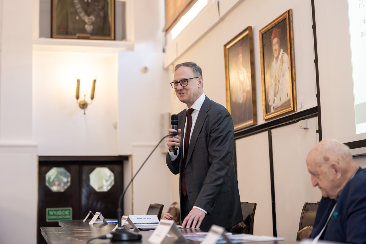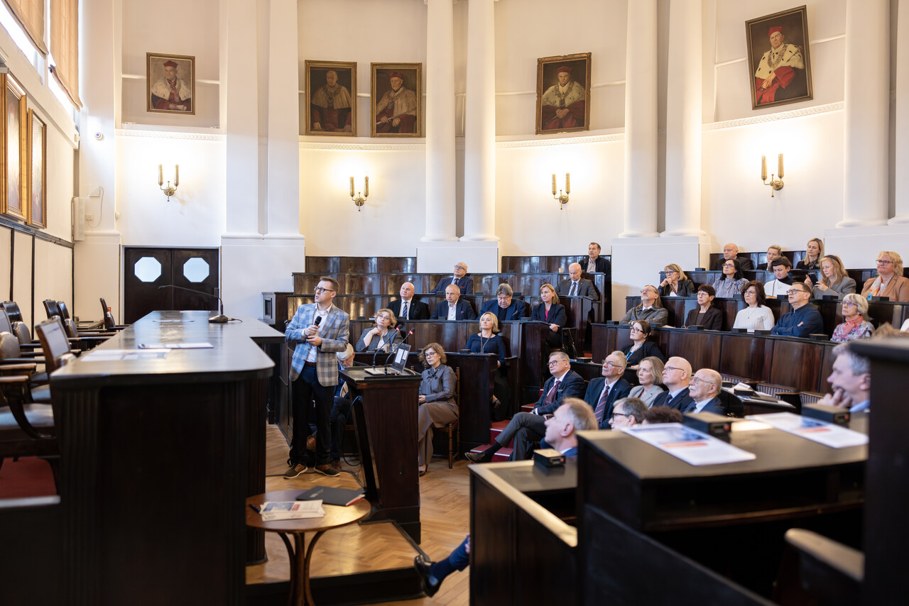 JM Rektor Uniwersytetu Medycznego w Łodzi, prof. Janusz Piekarski, podkreślił wieloletnie działania UM w Łodzi na rzecz aktywnego starzenia oraz zgodność inicjatywy ze Strategią Rozwoju UM w Łodzi na lata 2026–2030. Wskazał, że Polska wciąż nie jest w pełni przygotowana na wyzwania demograficzne, a wiele rozwiązań polityki senioralnej ma charakter doraźny. Przypomniał o inicjatywach Unii Europejskiej w ramach koncepcji Active Healthy Ageing oraz roli Rady ds. Polityki Senioralnej w tworzeniu strategii wspierających samodzielne, aktywne i satysfakcjonujące życie seniorów. Oficjalnego otwarcia zebrania dokonał dziekan Wydziału V Nauk Medycznych PAN, Pan Prof. Marek Krawczyk.