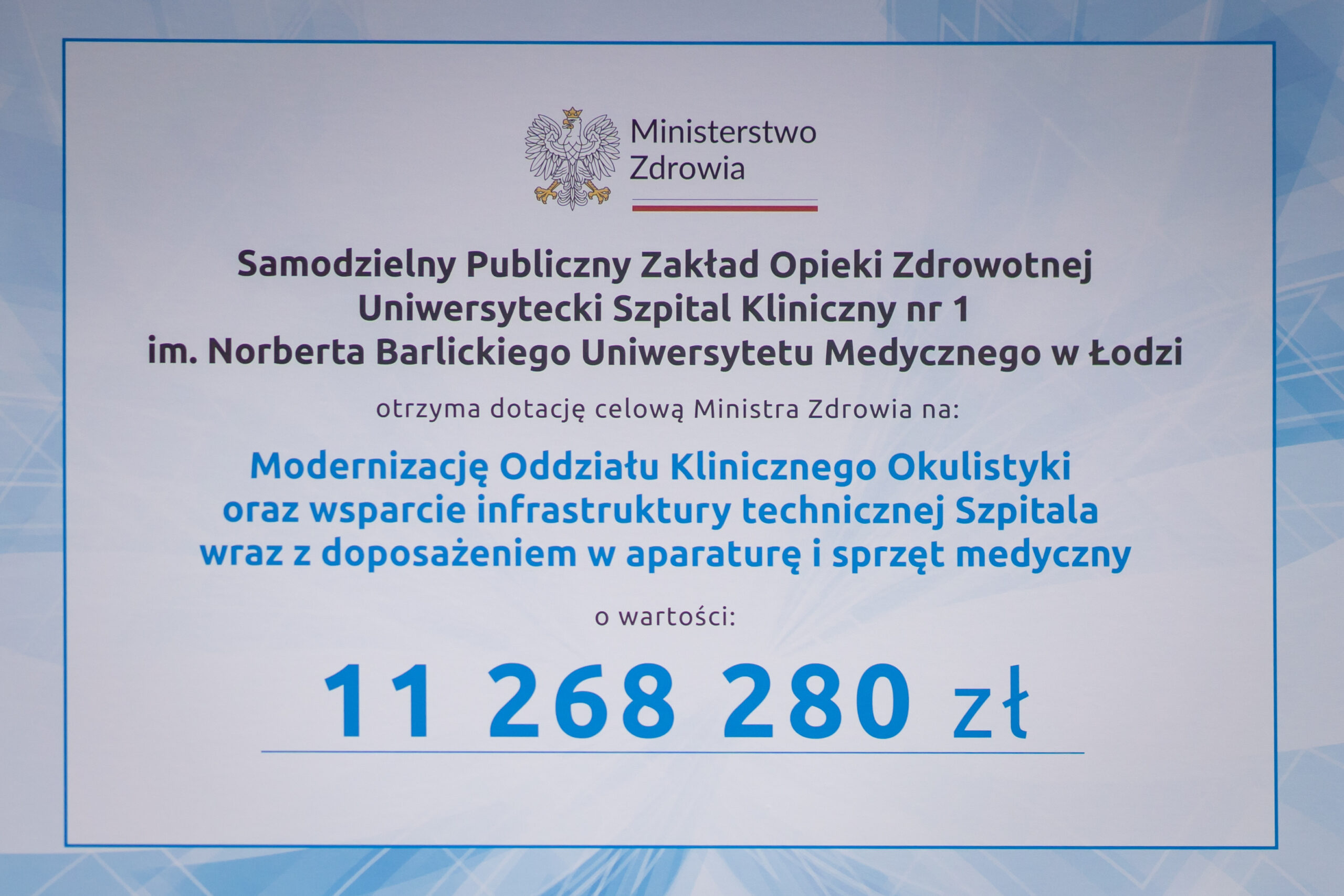 - Uniwersytecki Szpital Kliniczny nr 1 im. Norberta Barlickiego Uniwersytetu Medycznego w Łodzi – ponad 11 mln zł – na modernizację Oddziału Klinicznego Okulistyki oraz wsparcie infrastruktury technicznej Szpitala wraz z doposażeniem w aparaturę i sprzęt medyczny.