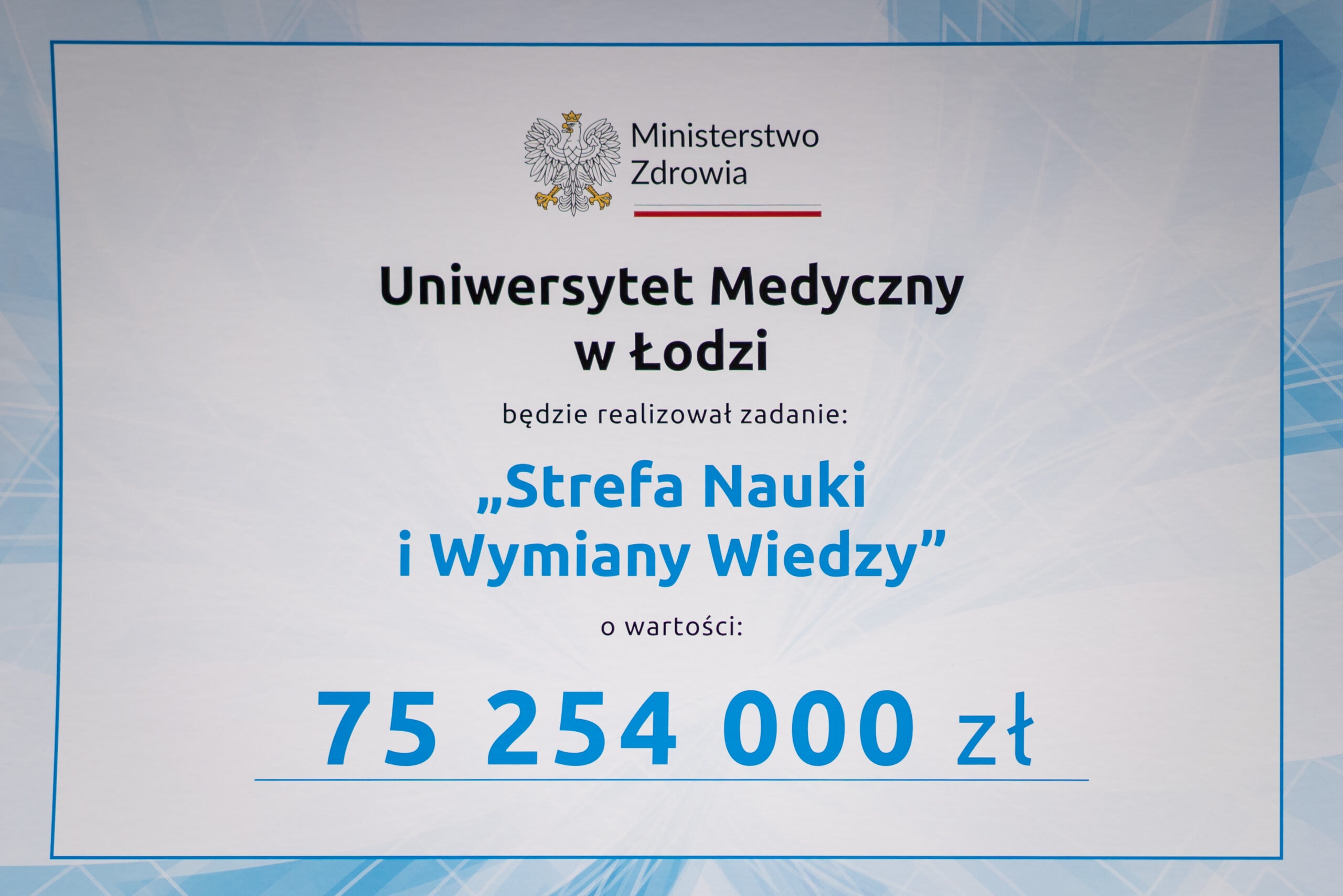 Podczas dzisiejszego briefingu prasowego Marcin Martyniak, Podsekretarz Stanu w Ministerstwie Zdrowia przekazał Uniwersytetowi Medycznemu w Łodzi czeki na łączną kwotę ponad 200 mln zł. Otrzymane środki przeznaczone zostaną na modernizację wybranych oddziałów szpitali klinicznych oraz utworzenie uczelnianej Strefy Nauki i Wymiany Wiedzy.