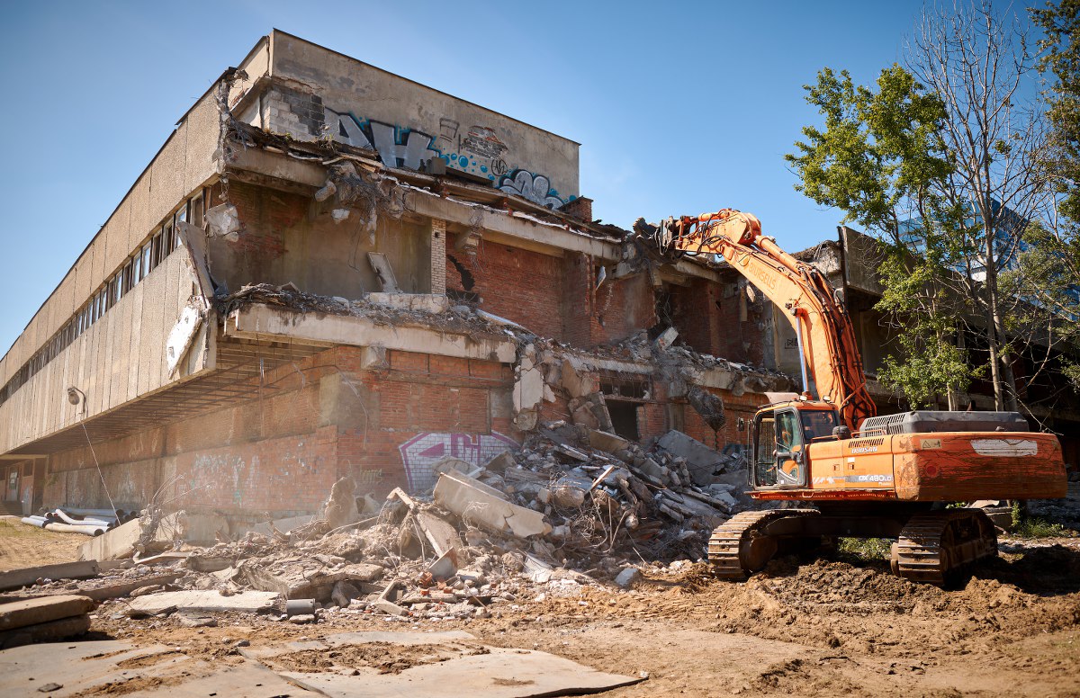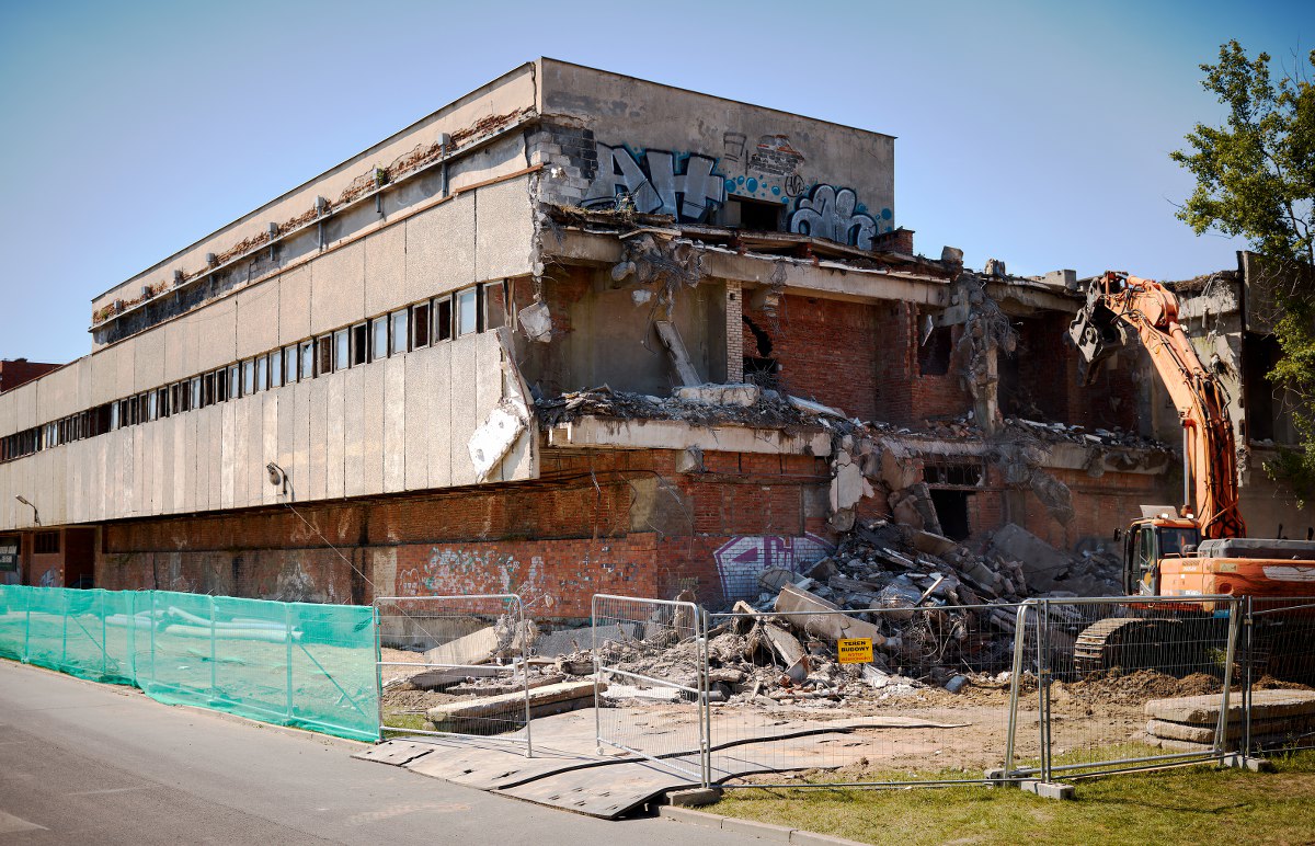 Wyburzany budynek to 2 kondygnacje naziemne i 2 podziemne o kubaturze 68 tys. m3 Prace rozbiórkowe potrwają do końca sierpnia br.