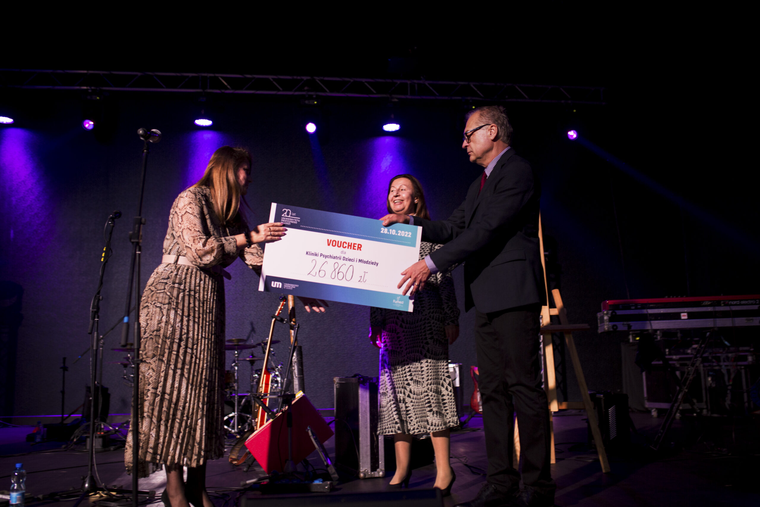 Wydarzenie miało charakter szczególny. Urodzinowym prezentem od publiczności był udział w akcji charytatywnej. Dochód ze sprzedaży biletów – cegiełek został w całości przekazany na potrzeby działalność Kliniki Psychiatrii Dzieci i Młodzieży Uniwersytetu Medycznego w Łodzi. Rektor, prof. Radzisław Kordek oraz Prezeska „Fundacji dla Uniwersytetu Medycznego w Łodzi”, mgr Joanna Milczarek przekazali kierującej Kliniką, prof. Agnieszce Gmitrowicz symboliczny czek na kwotę 26.860 zł.