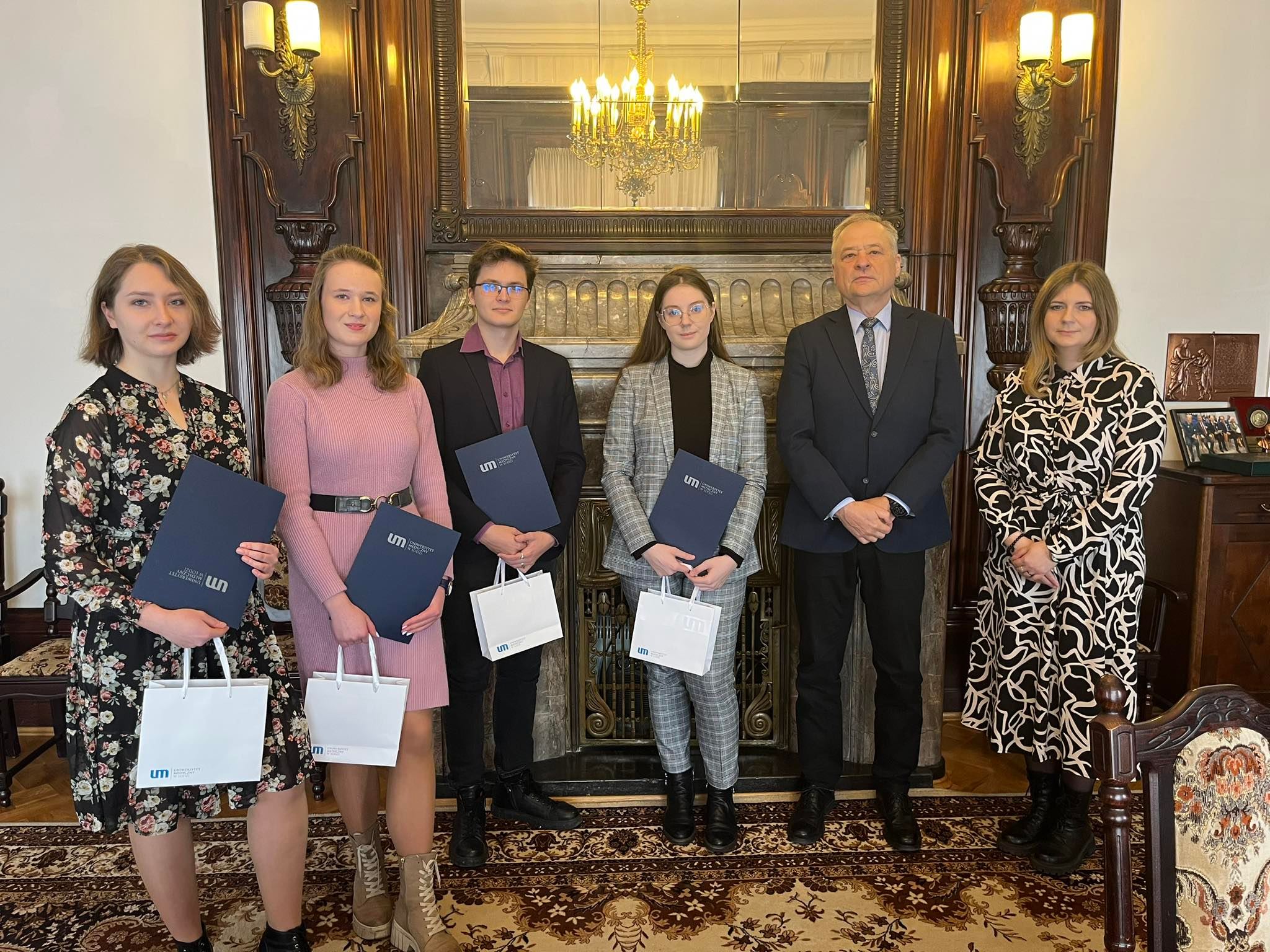 Dzisiaj czterech naszych studentów, którzy jako maturzyści wzięli udział w Programie Stażowym i zaliczyli pierwszy semestr zajęć, spotkało się z JM Rektorem prof. Radzisławem Kordkiem. Absolwenci projektu otrzymali z rąk Rektora gratulacje oraz jednorazową nagrodę w wysokości 1 000 PLN. Oprócz tego Prezes Fundacji dla Uniwersytetu Medycznego w Łodzi — Joanna Milczarek, przekazała studentom e‑booki.