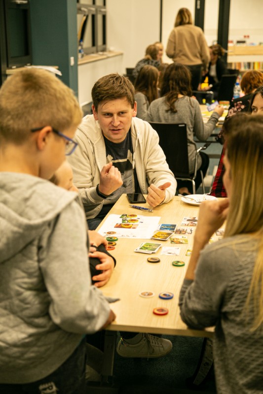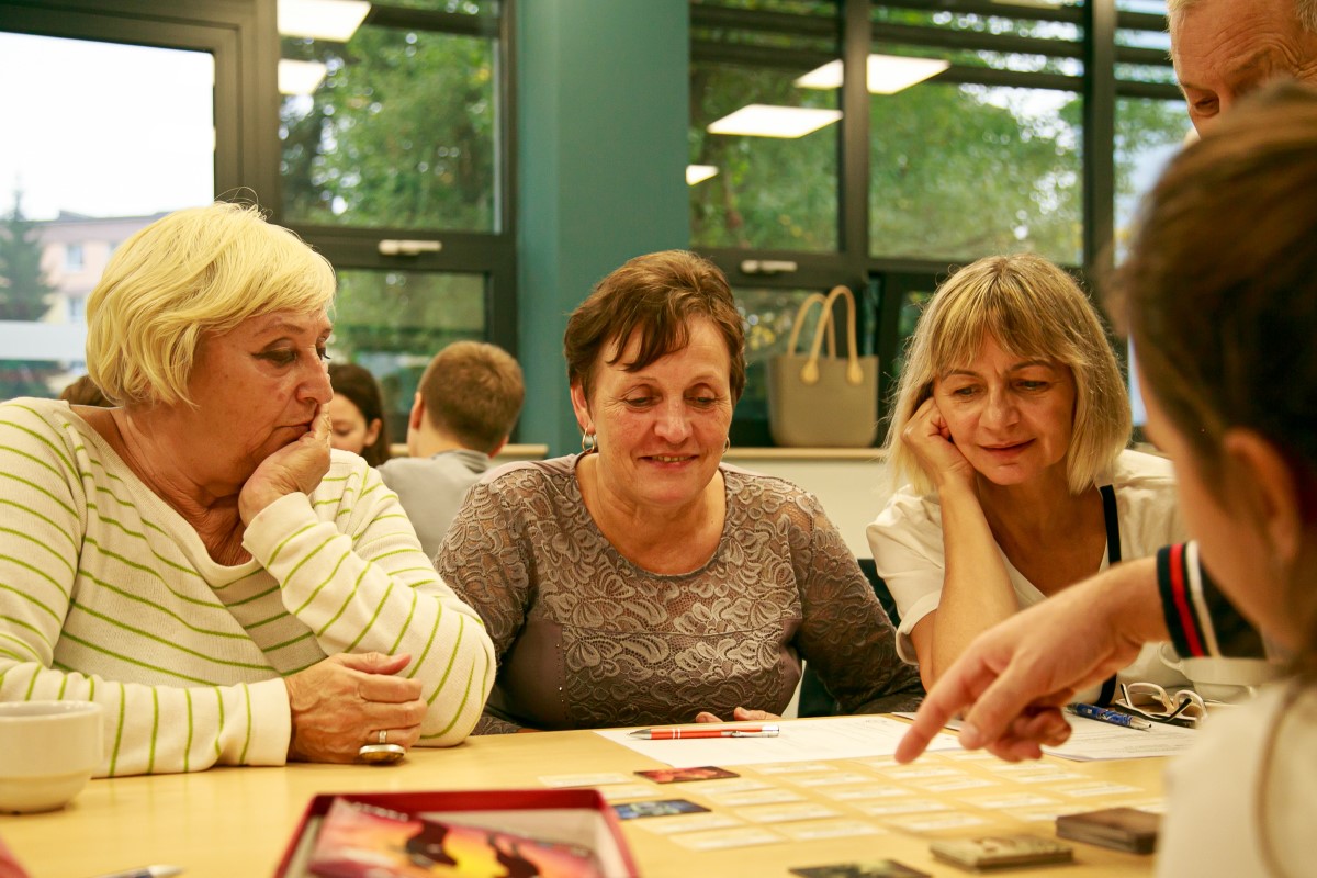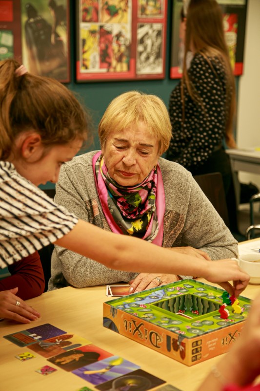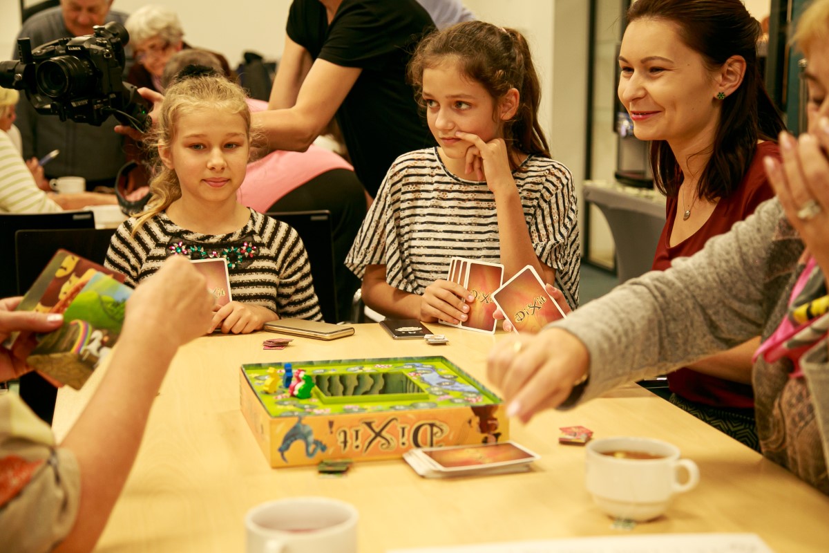 26 września w ramach projektu “Healhy Loneliness (Zdrowa Samotność)” odbyło się kolejne spotkanie z seniorami. Tym razem, seniorzy, rodzice i dzieci spotkali się w Rozgrywce — nowej Filii Biblioteki Miejskiej w Łodzi przy ul. Powstańców Wielkopolskich 3. Uczestnicy zapoznali się z historią gier, poznali typy nowczesnych gier planszowych oraz mieli okazję zagrać w kilka popularnych tytułów.