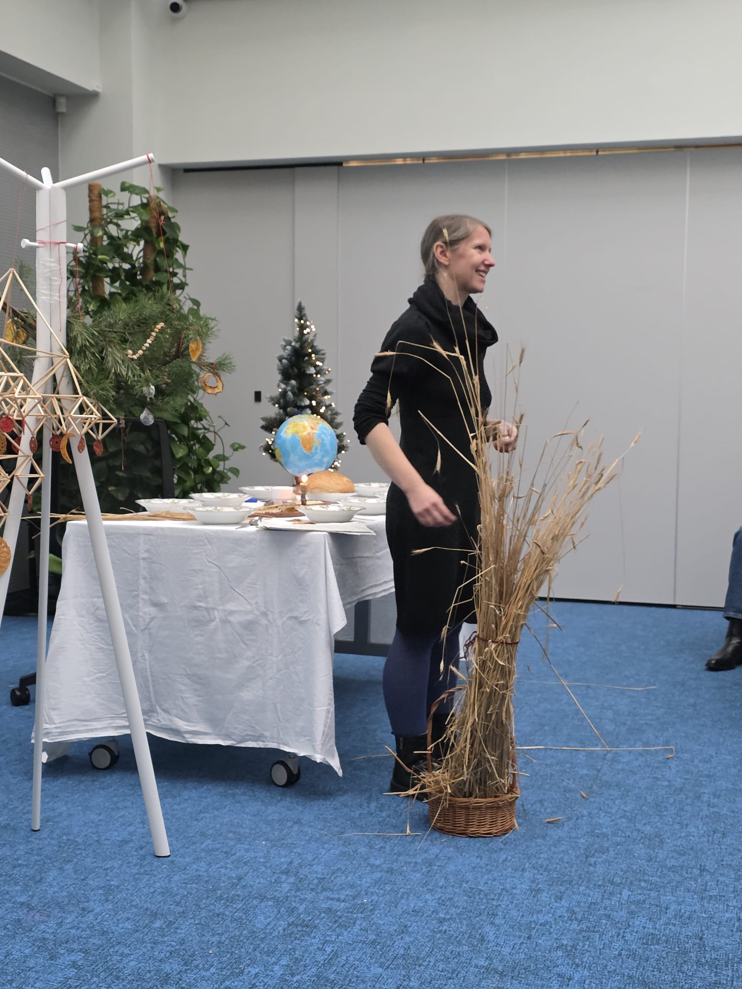 Wyda­rze­nie mia­ło cha­rak­ter inte­rak­tyw­ny – stu­den­ci aktyw­nie uczest­ni­czy­li w roz­mo­wach oraz wspól­nym przy­go­to­wy­wa­niu świą­tecz­nych deko­ra­cji i świec wosko­wych.