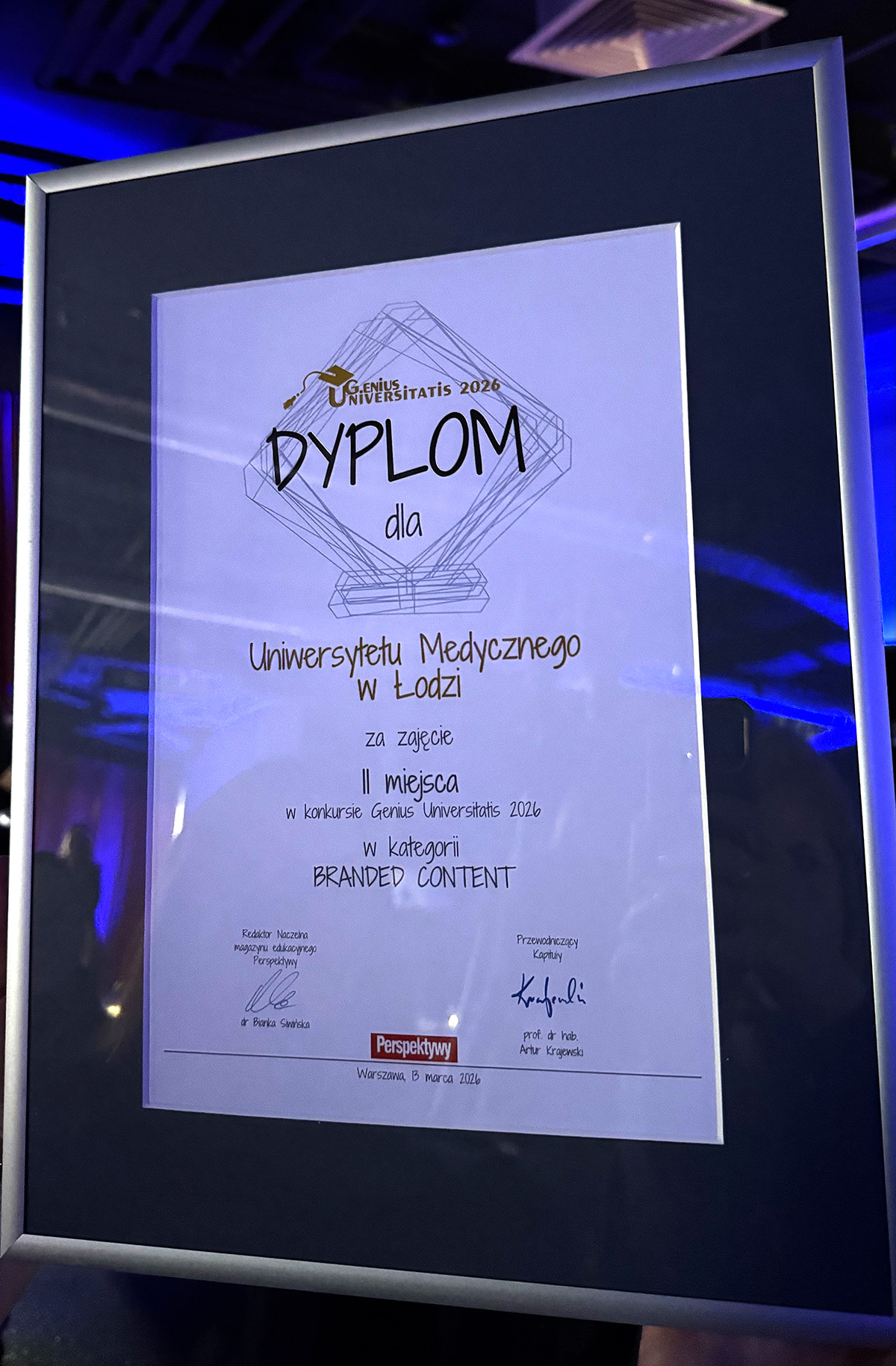 Z przyjemnością informujemy, że zespół Biura Promocji Uniwersytetu Medycznego w Łodzi znalazł się na podium w XIII edycji prestiżowego konkursu Genius Universitatis, organizowanego przez Perspektywy.