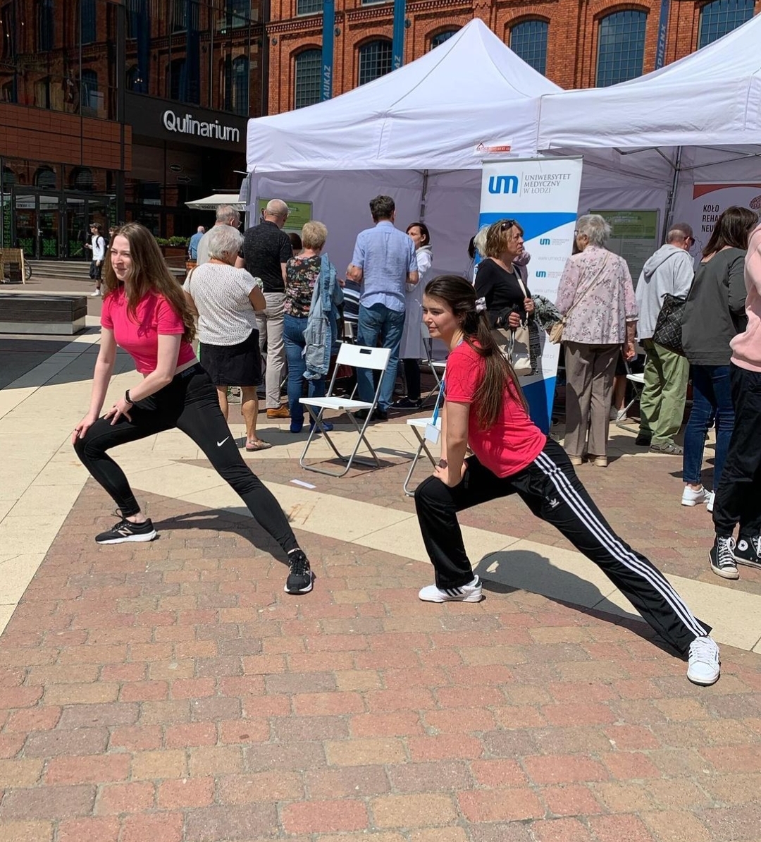 O każdej pełnej godzinie studenci zrzeszeni przy SKN Neurorehabilitacji demonstrowali ćwiczenia zalecane osobom starszym (rozciągające, oporowe, równoważne, taneczne). Seniorzy mogli również wykonać testy oceniające ryzyko upadków, sprawność funkcjonalną i siłę mięśniową. We współpracy z Urzędem Miejskim Poddębice oraz Termami Poddębice promowano także działania EIPonAHA (European Innovation Partnership on Active and Healthy Ageing), w ramach których Wydział Nauk