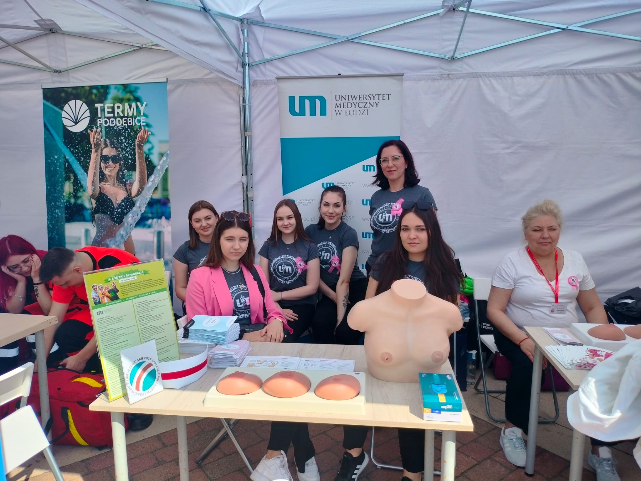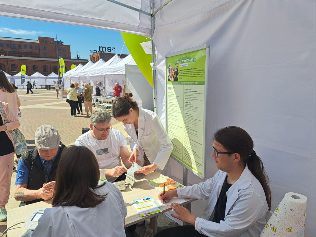 W ramach naszych stanowisk, przy udziale studentów i pracowników Uniwersytetu oraz przedstawicielek Stowarzyszenia Łódzki Klub Amazonka, Seniorzy mieli możliwość zapoznania się z zasadami profilaktyki raka piersi, wykonania pomiaru ciśnienia tętniczego, i glikemii, skorzystania z indywidualnych porad dotyczących właściwego stosowania leków.