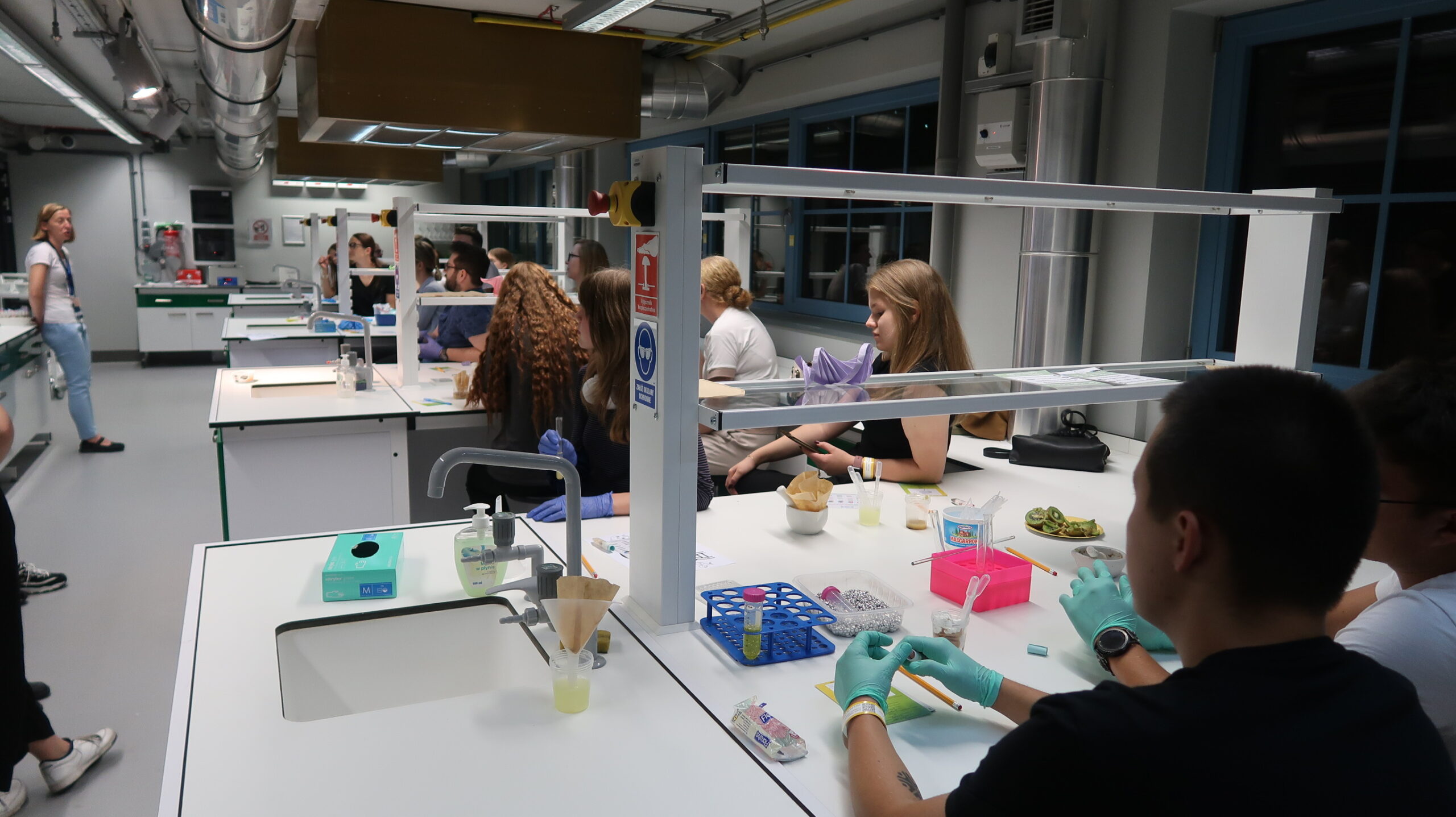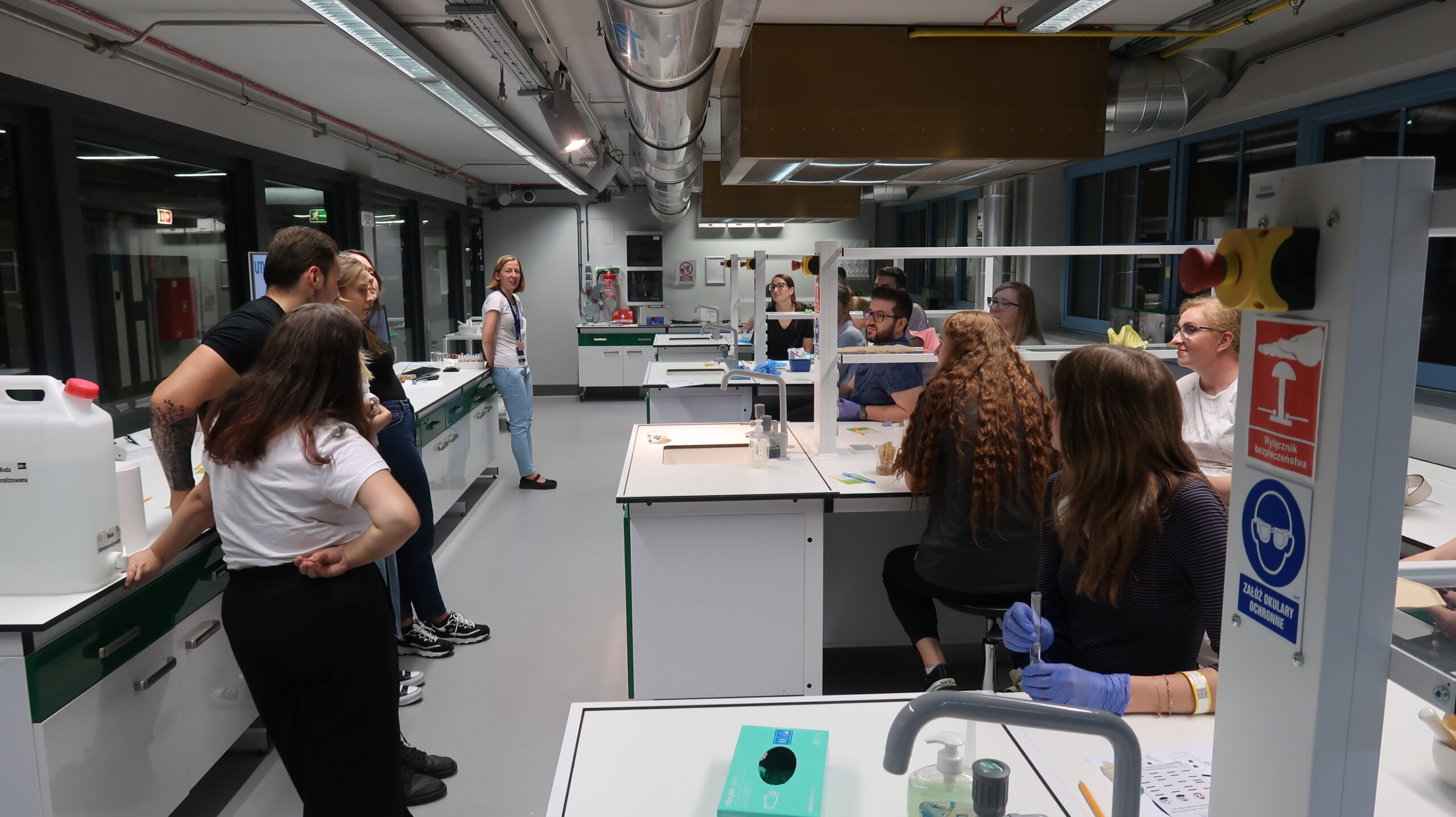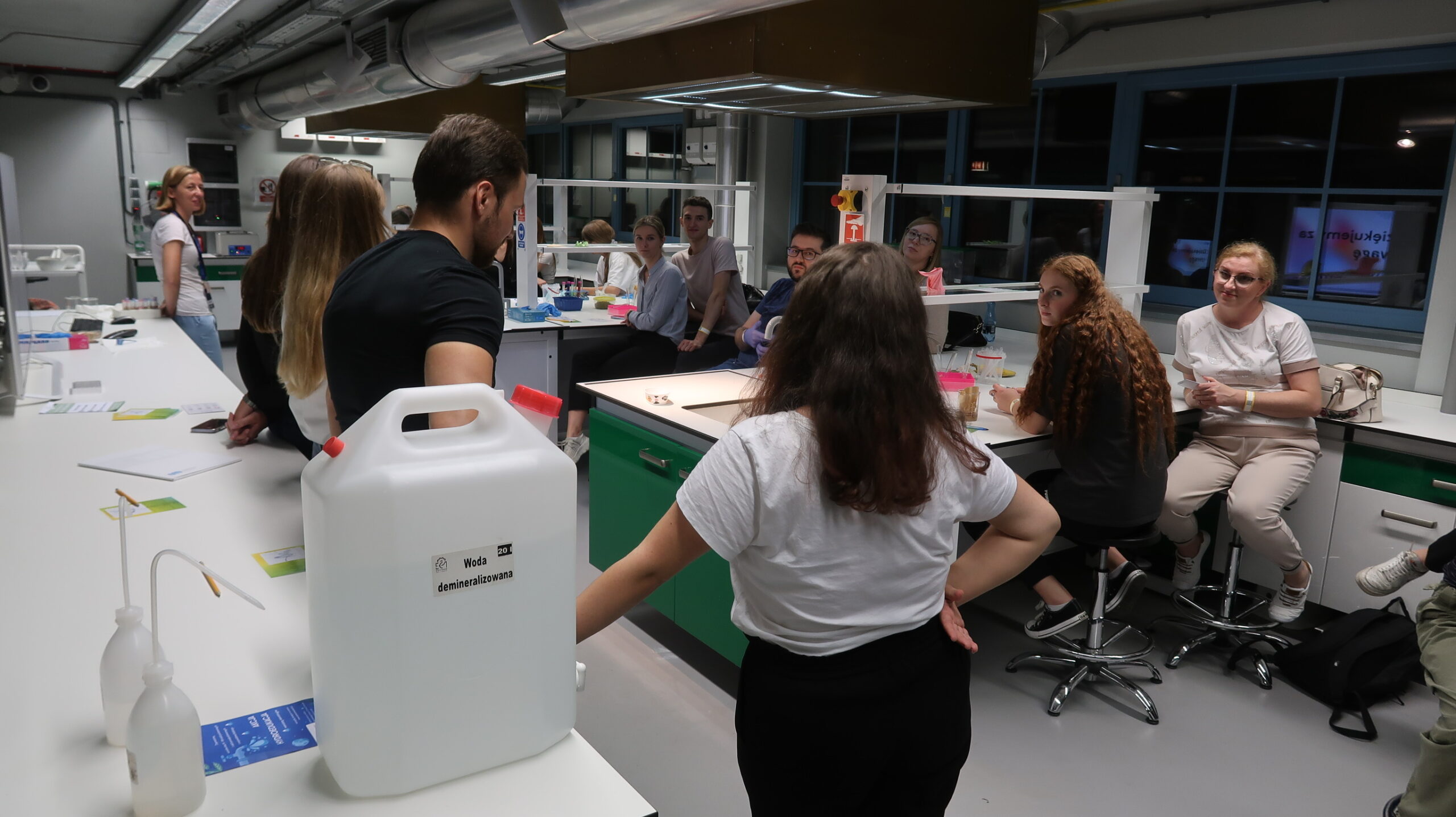 Ogromnym zainteresowaniem cieszyły się warsztaty przygotowane przez zespół dr hab. n. med. Elżbiety Płuciennik z Zakładu Genomiki Funkcjonalnej UM, podczas których uczestnicy mogli samodzielnie wyizolować DNA oraz zobaczyć z bliska charakterystyczną fluorescencję wybranych związków.