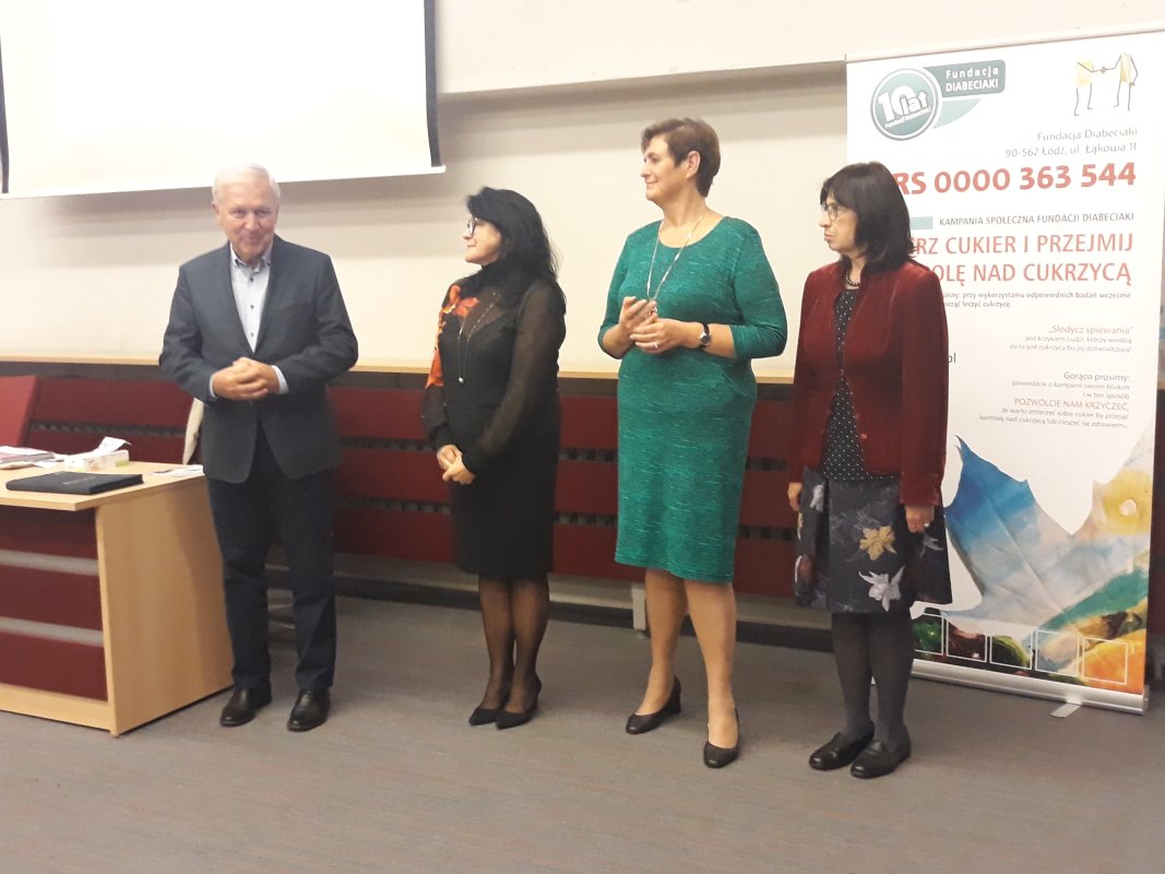 W uroczystym rozdaniu świadectw uczestniczyli: Kierownik studiów podyplomowych dla edukatorów zdrowotnych – prof. Romuald Holly, Kierownik programu medycznego studiów – prof. Agnieszka Szadkowska, Koordynator studiów – dr Anna Rybarczyk-Szwajkowska oraz Prezes Fundacji „Diabeciaki” – mgr Barbara Kucharska.