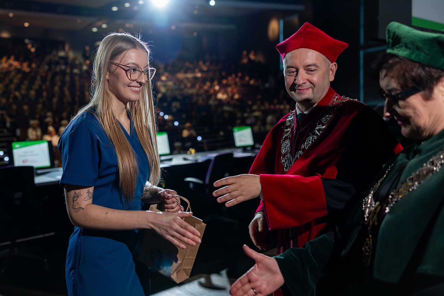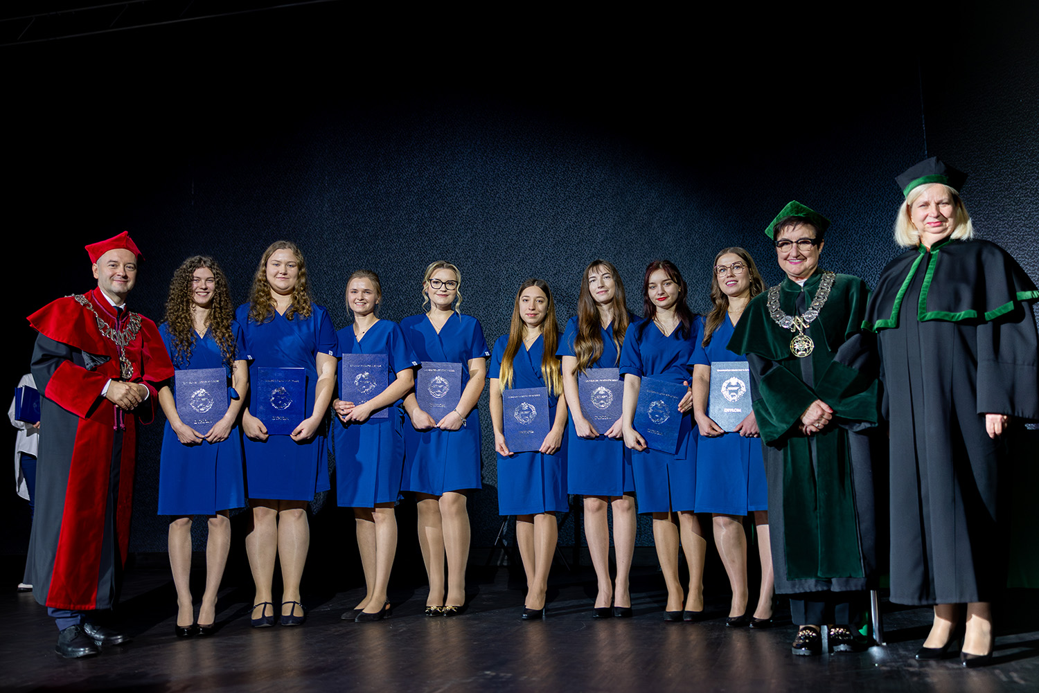 Podczas uroczystości wyróżniono absolwentów Wydziału Nauk o Zdrowiu, którzy uzyskali najlepsze wyniki w nauce oraz aktywnie uczestniczyli w działalności organizacji studenckich.