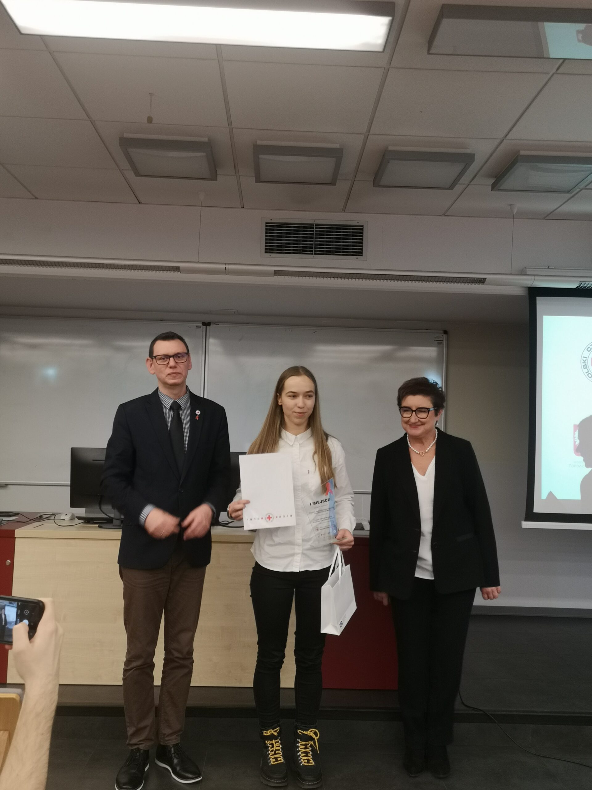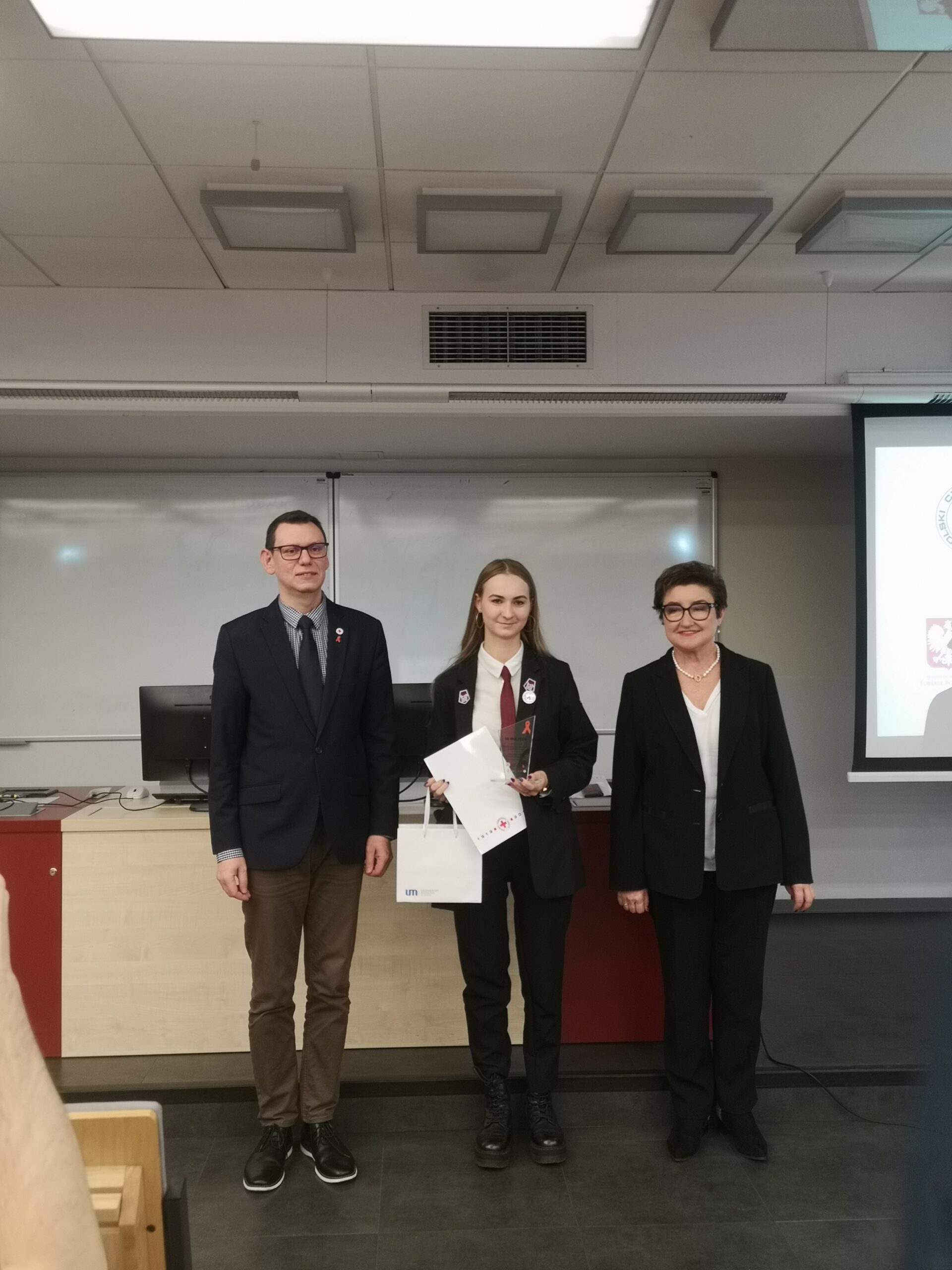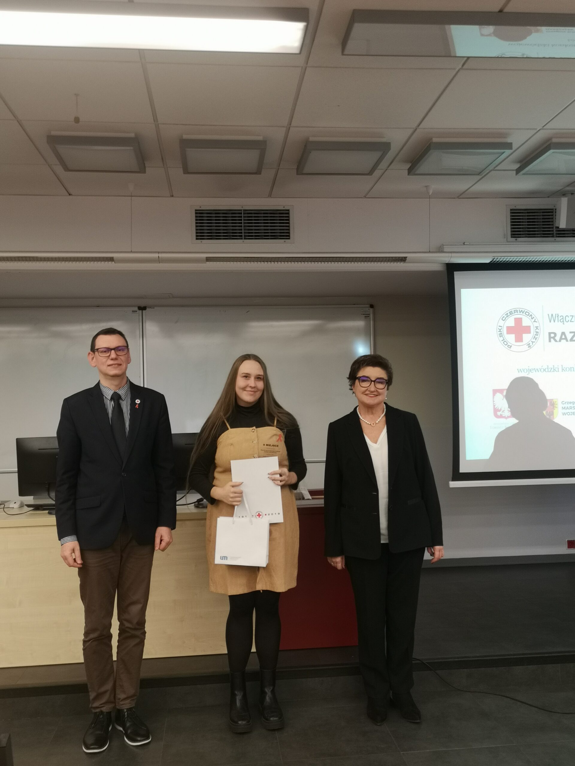 Pod­czas uro­czy­ste­go pod­su­mo­wa­nia kon­kur­su obec­ni byli przed­sta­wi­cie­le PCK oraz uczel­ni: