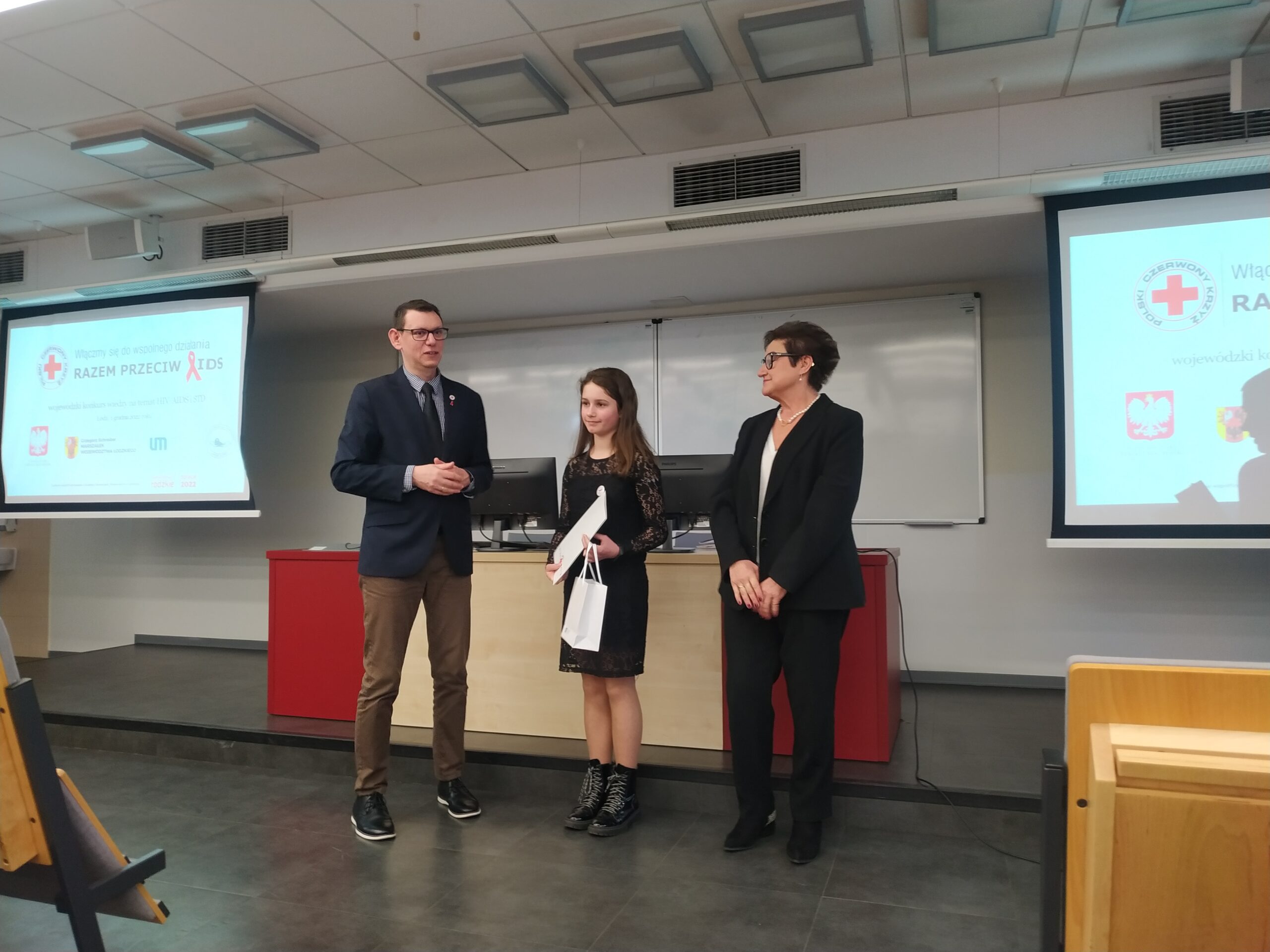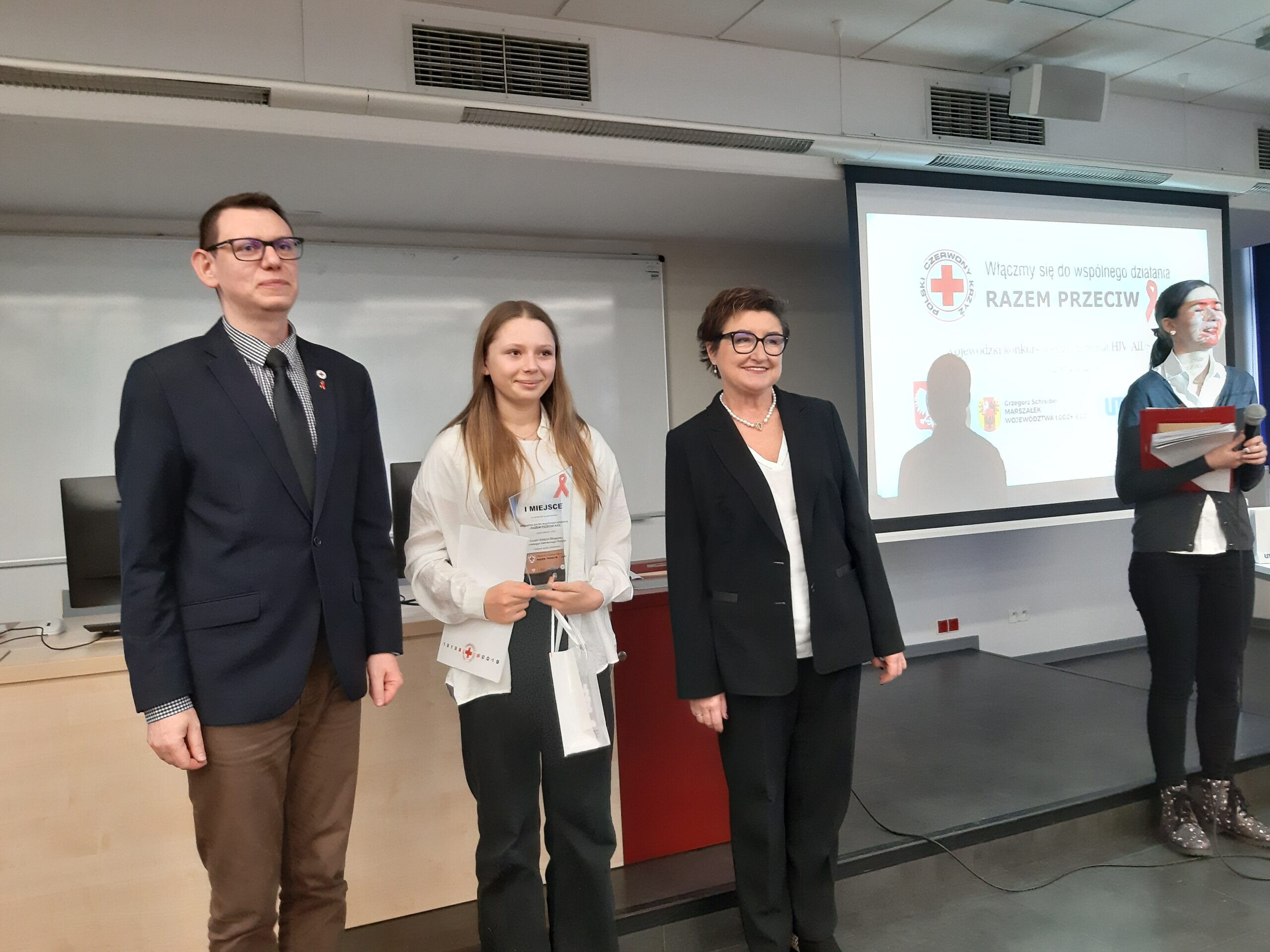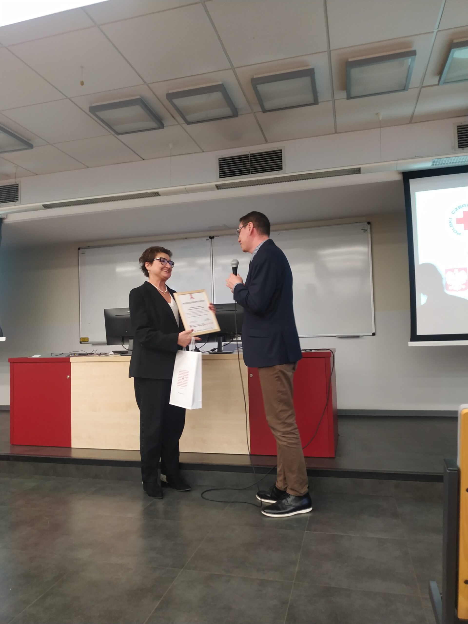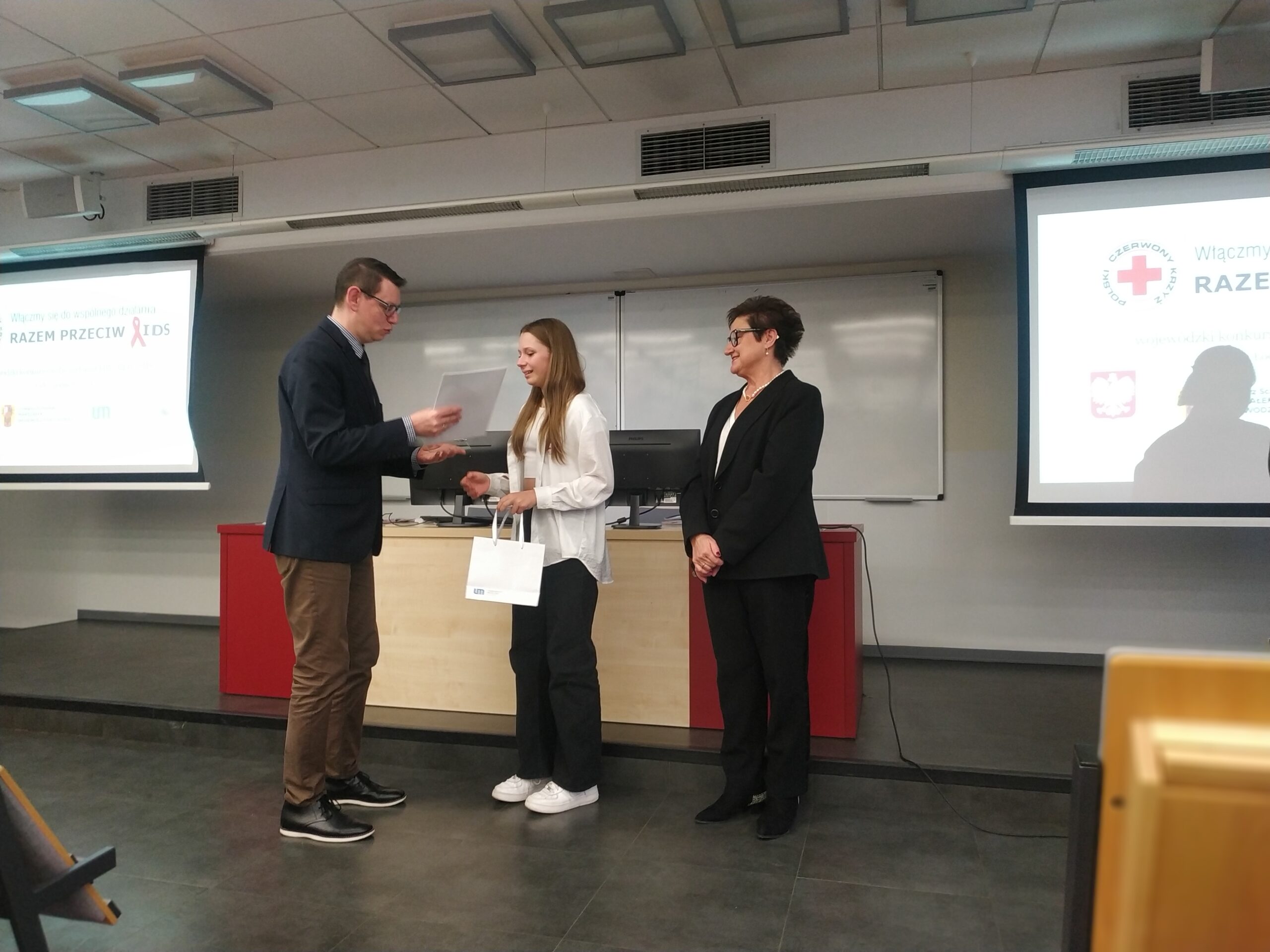 Pod­czas uro­czy­ste­go pod­su­mo­wa­nia kon­kur­su obec­ni byli przed­sta­wi­cie­le PCK oraz uczel­ni: