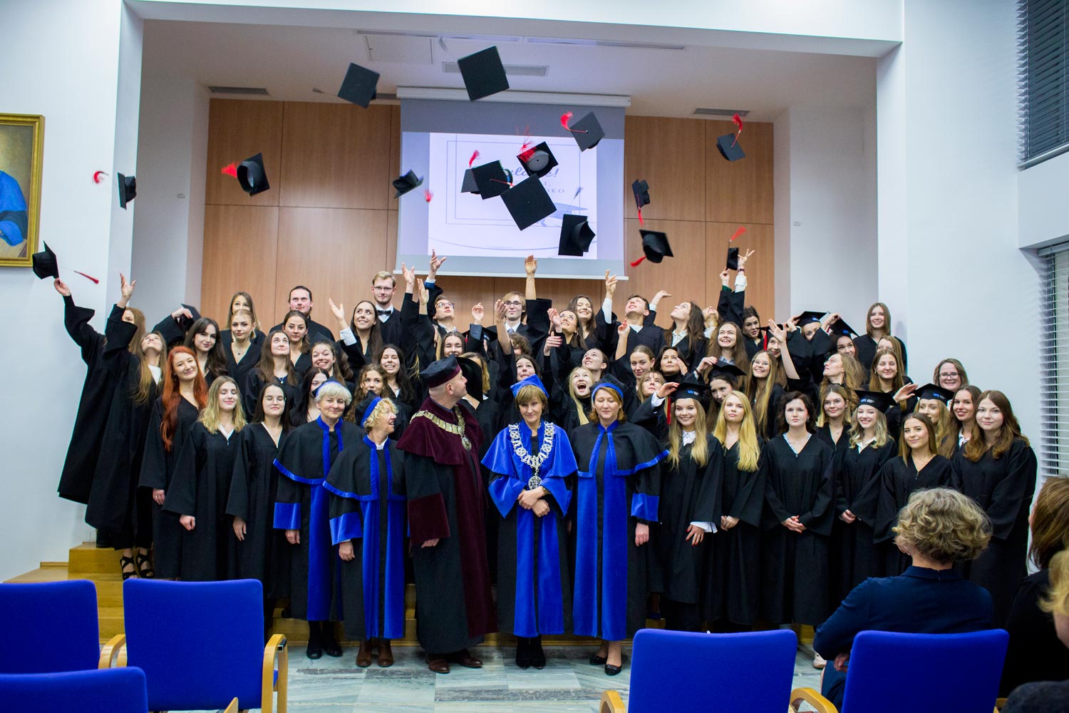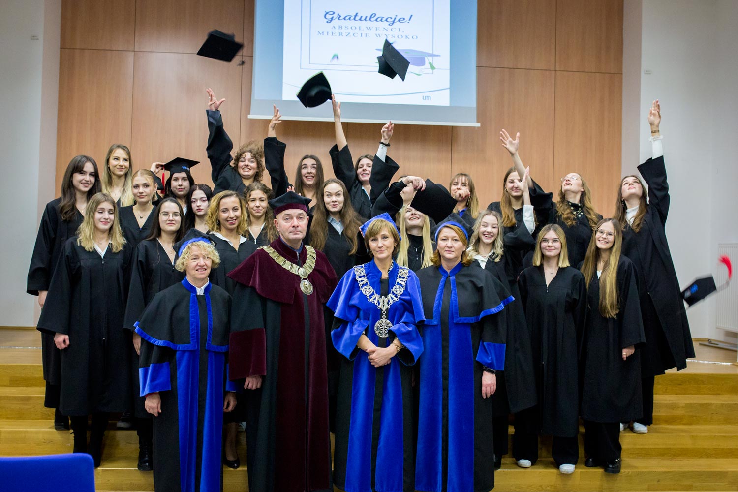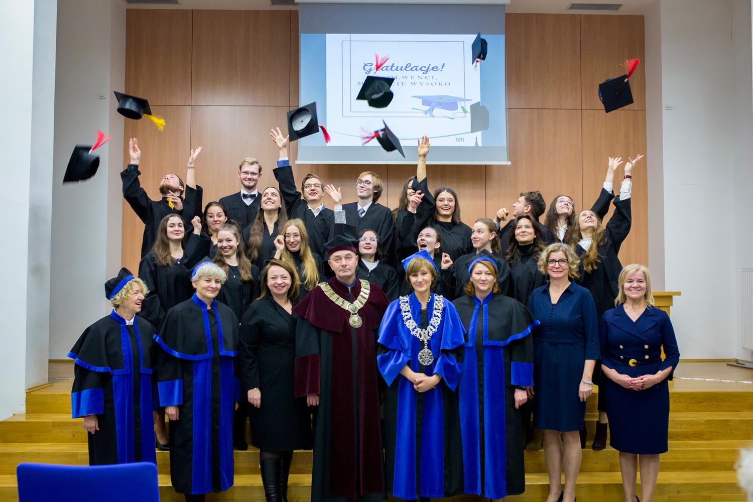23 listo­pa­da 2023 w Audy­to­rium im. Prof. Zofii Jerz­ma­now­skiej 142 Absol­wen­tów kie­run­ków: ana­li­ty­ka medycz­na oraz kosme­to­lo­gia, któ­rzy w roku aka­de­mic­kim 2022/2023 ukoń­czy­li stu­dia, otrzy­ma­li z rąk Pro­rek­to­ra ds. Woj­sko­wej Służ­by Zdro­wia prof. Wal­de­ma­ra Macha­ły oraz Dzie­kan Wydzia­łu Far­ma­ceu­tycz­ne­go prof. Anny Kila­no­wicz-Sapo­ta dyplo­my.