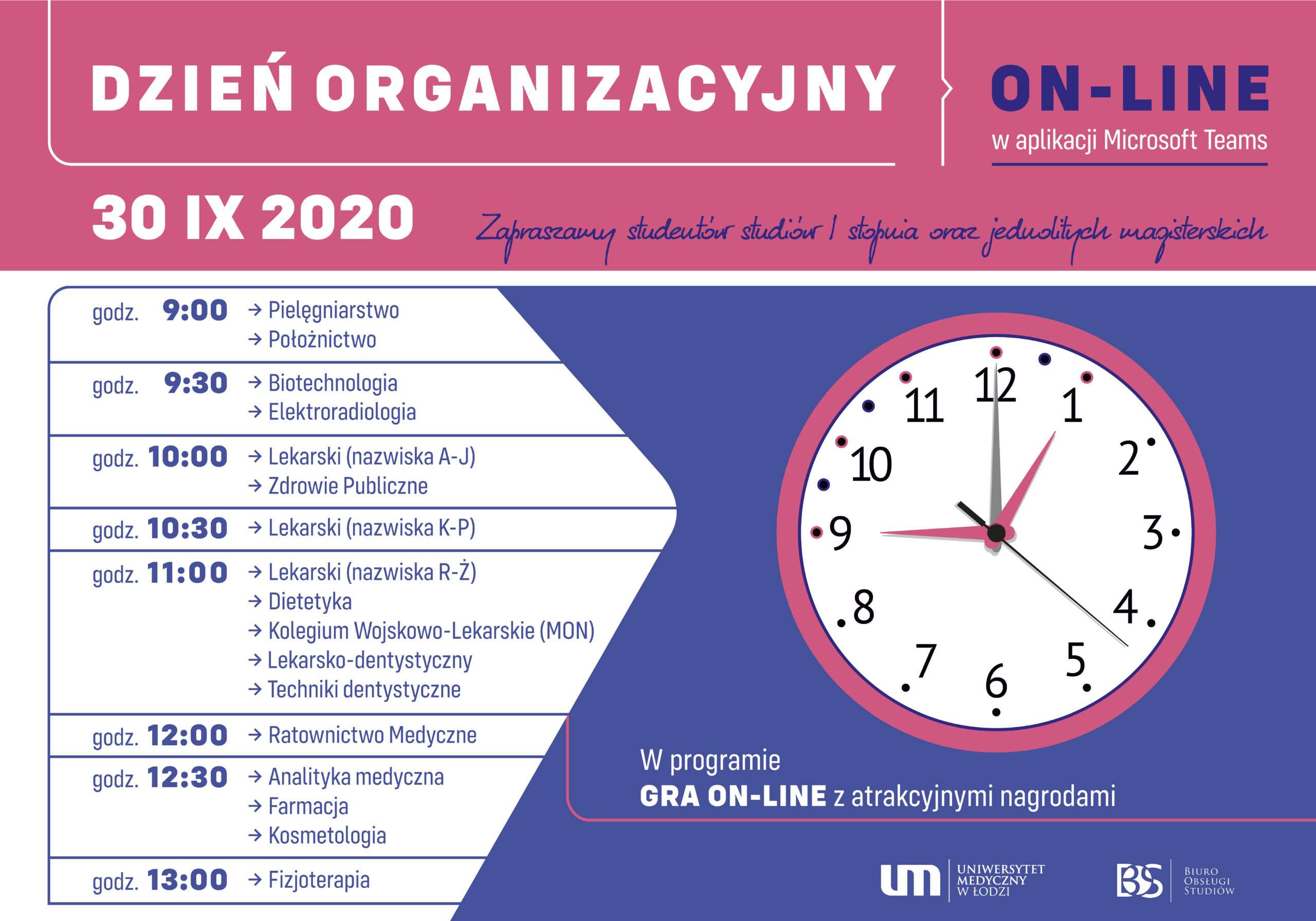 Zapraszamy na spotkanie organizacyjne dla studentów 1 roku, rozpoczynających studia w roku akademickim 2020/2021 Opublikowano: 28 września 2020 Podziel się na: